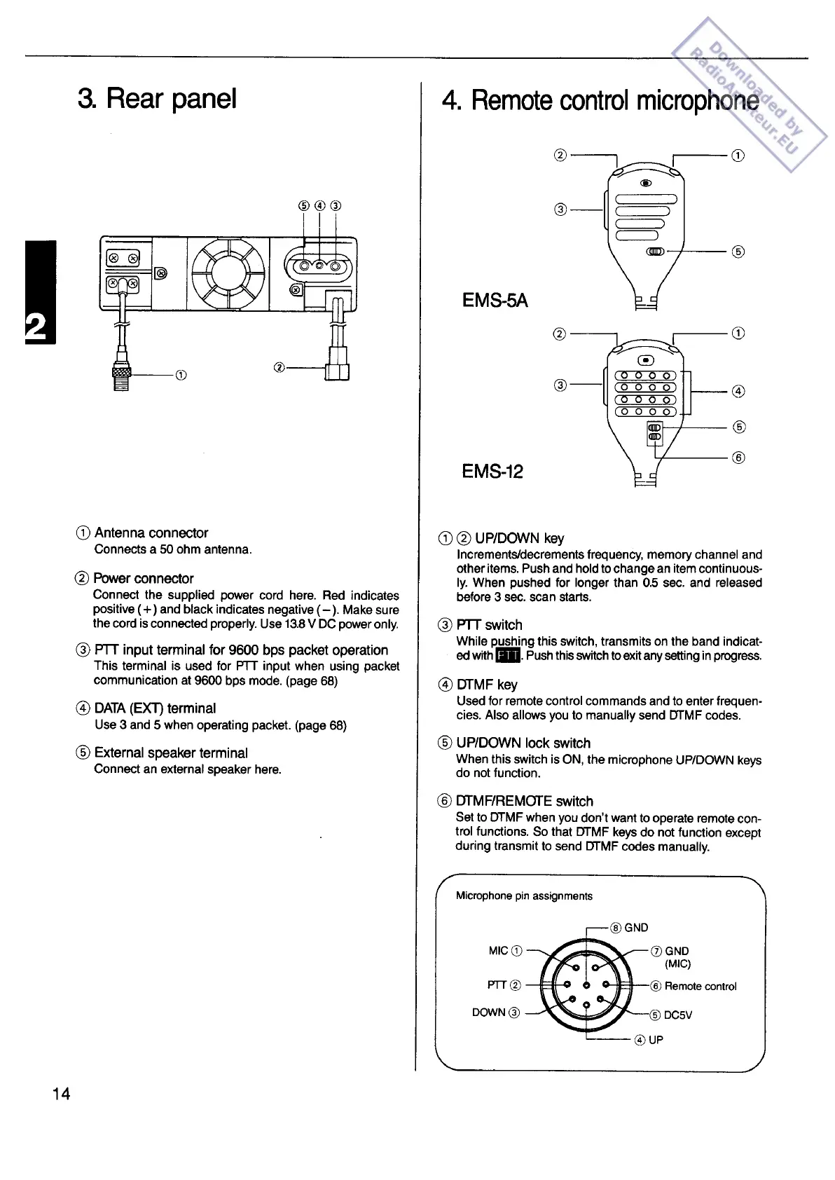 Alinco DR-610E - Rear Panel Connectors; Remote Control Microphone