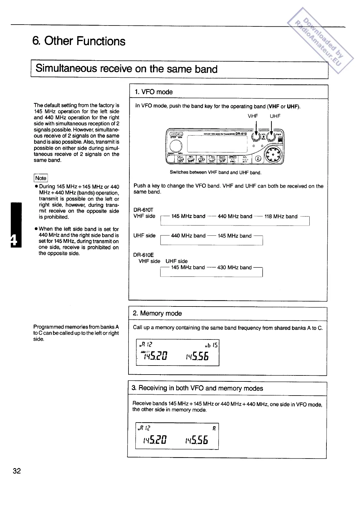 Alinco DR-610E - Other Functions; Simultaneous Same Band Receive
