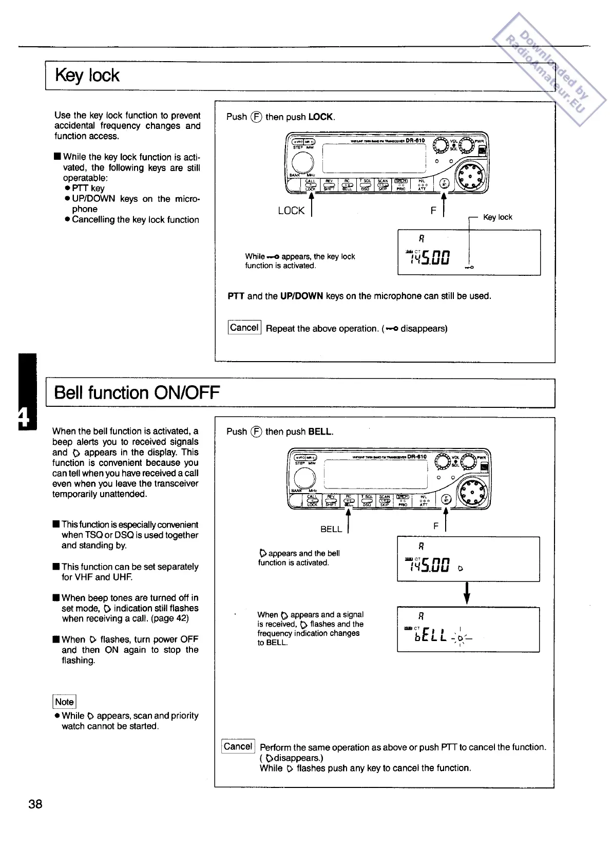 Alinco DR-610E - Key Lock Function; Bell Function Control