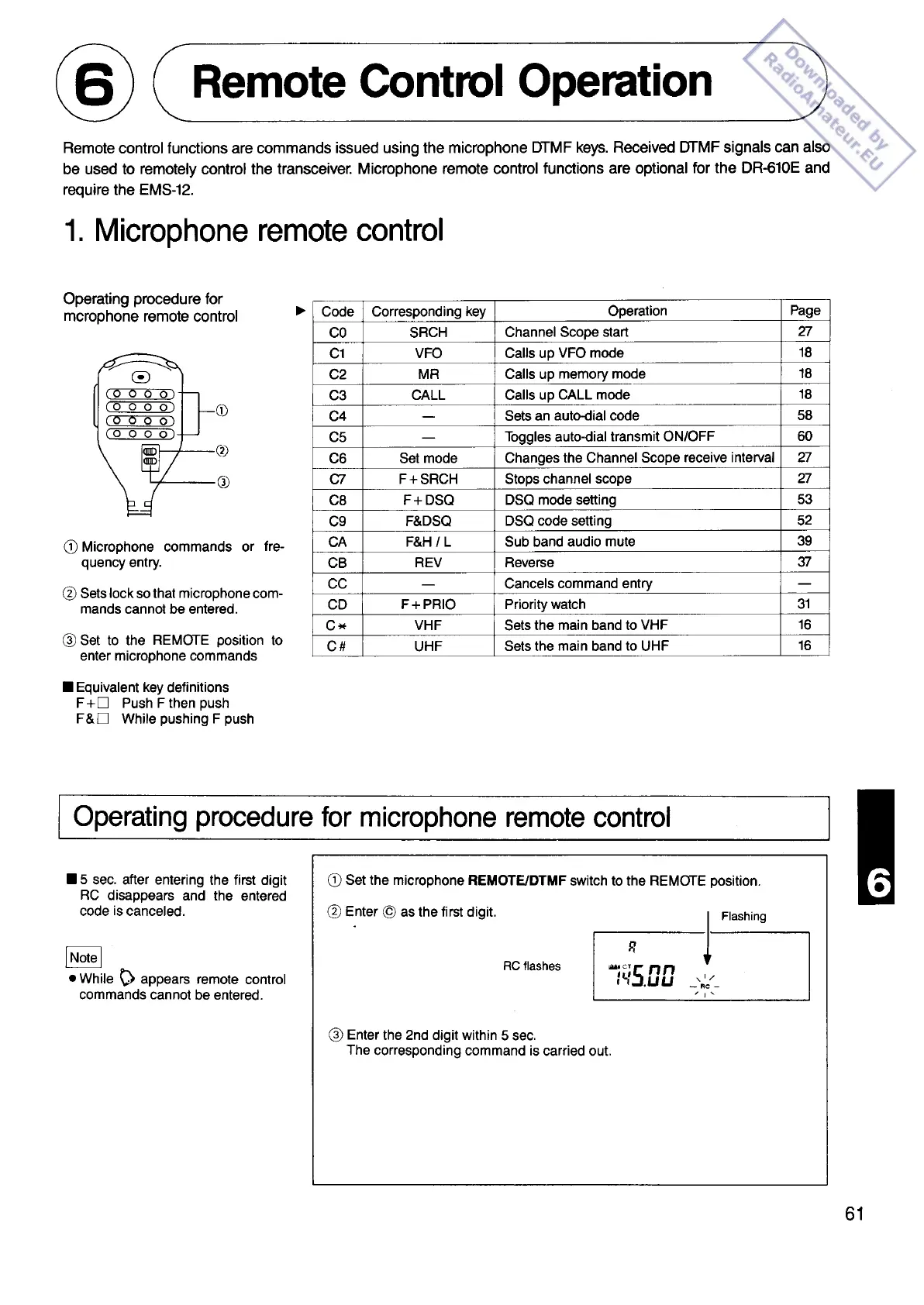 Alinco DR-610E - Remote Control Operation; Microphone Remote Control