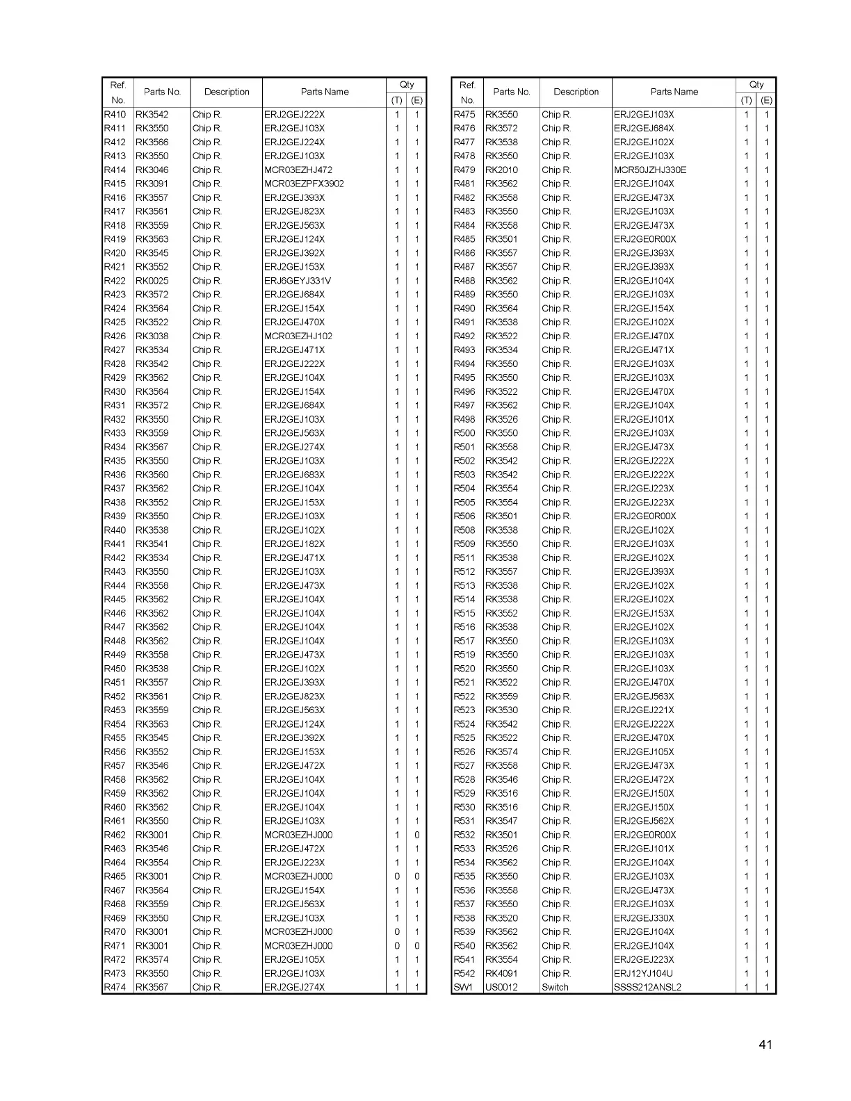 R410 RK3542 Chip R. ERJ2GEJ222X 1 1