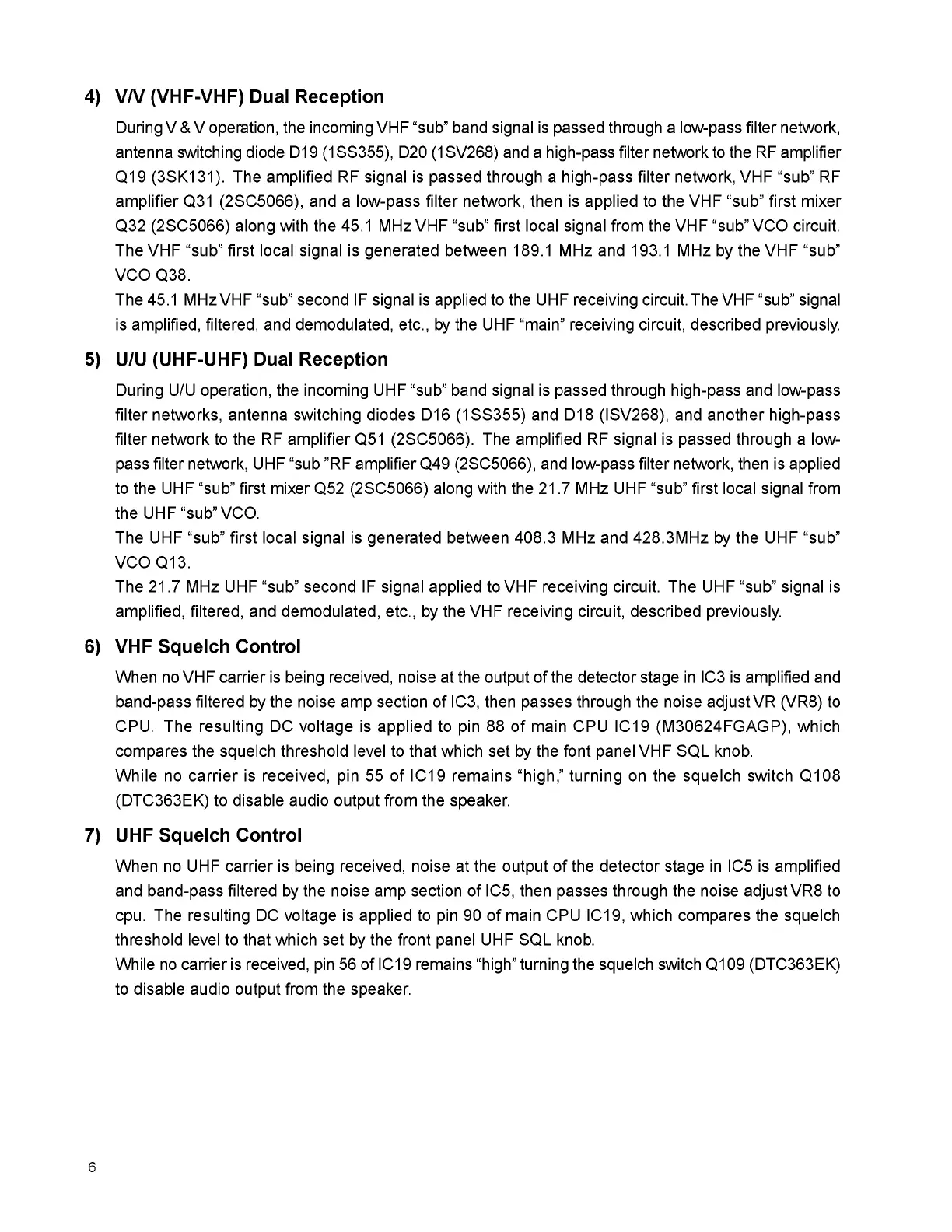 cpu. The resulting DC voltage is applied to pin 90 of main CPU IC19, which compares the squelch