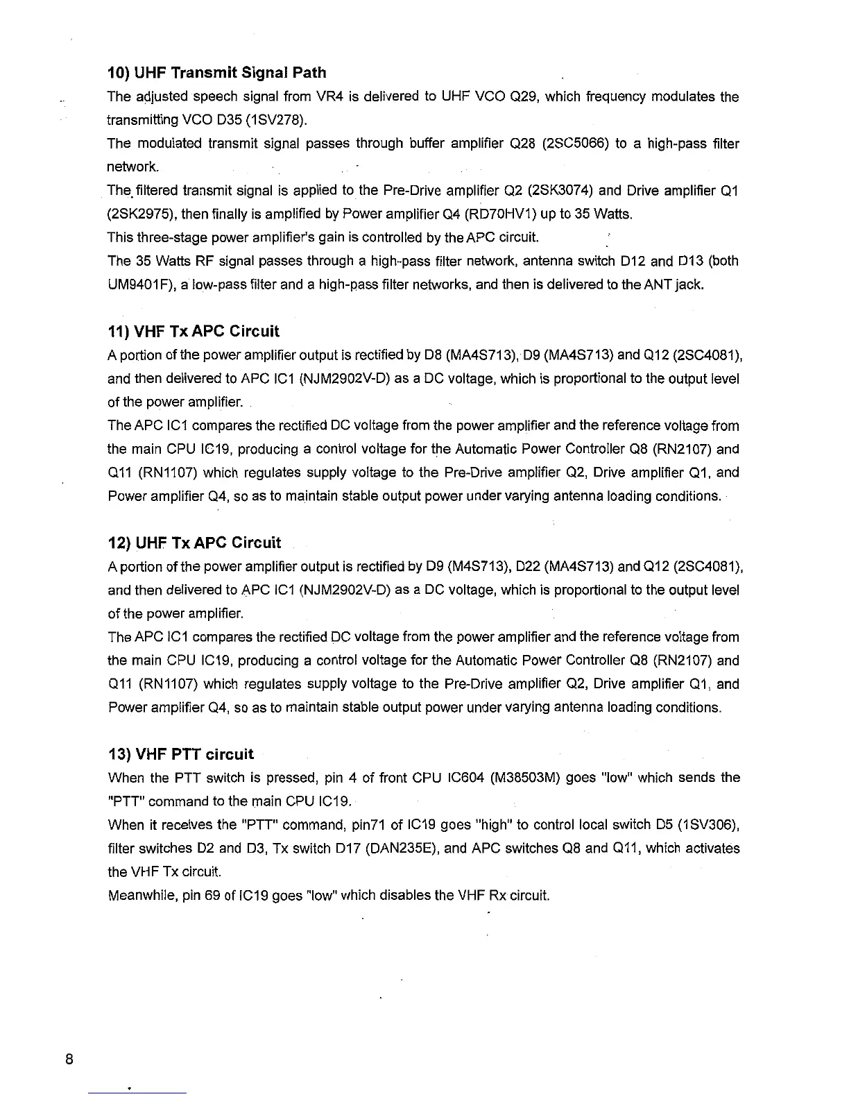 Alinco DR-635 - UHF Transmit Signal Path; VHF Tx APC Circuit; UHF Tx APC Circuit; VHF PTT Circuit