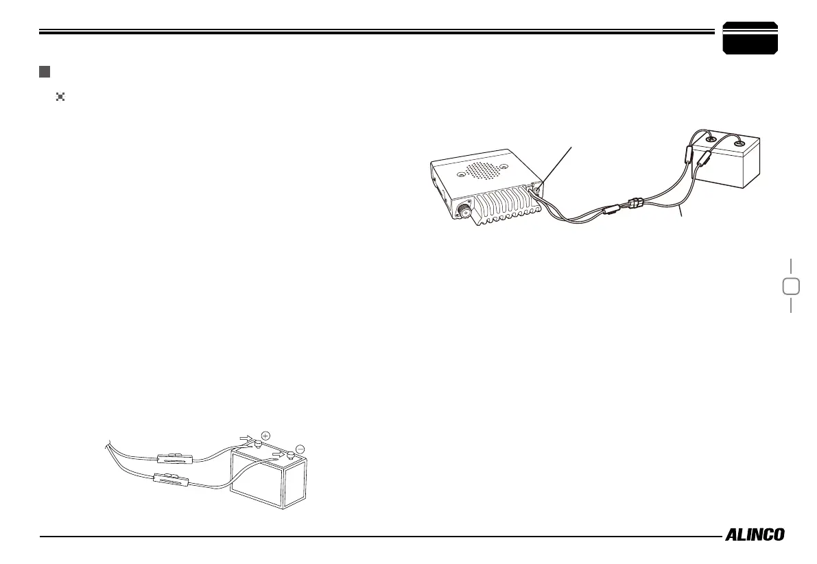 connection with negative (-) of battery, then connect with radio.