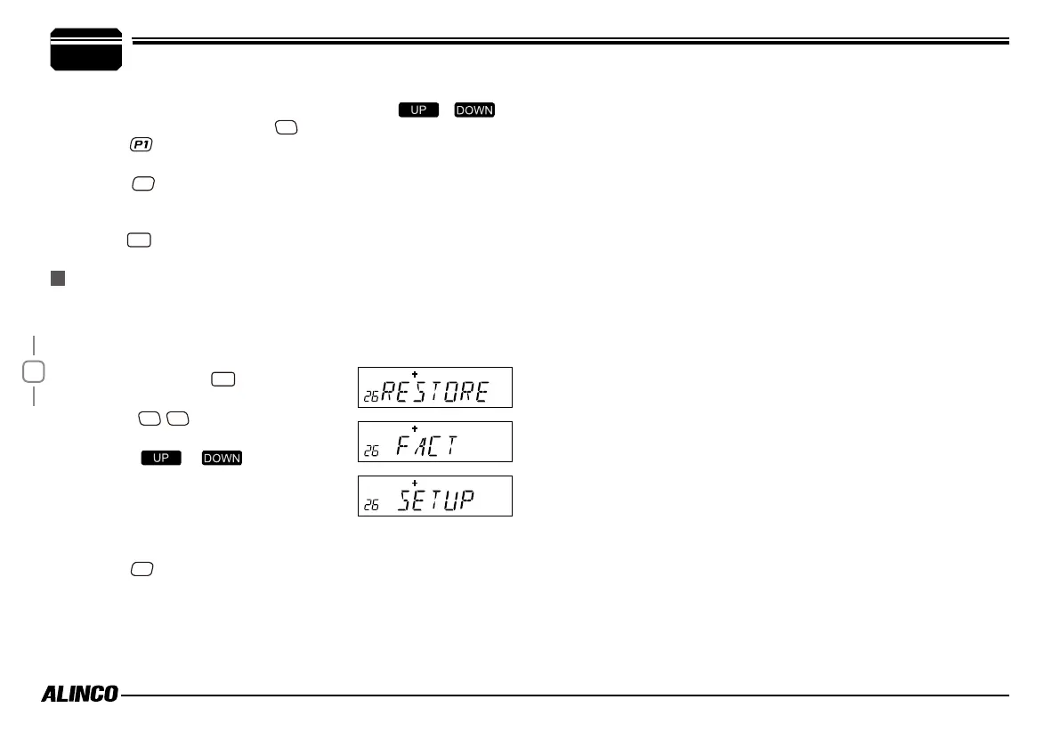 menu, LCD displays "RESTORE".