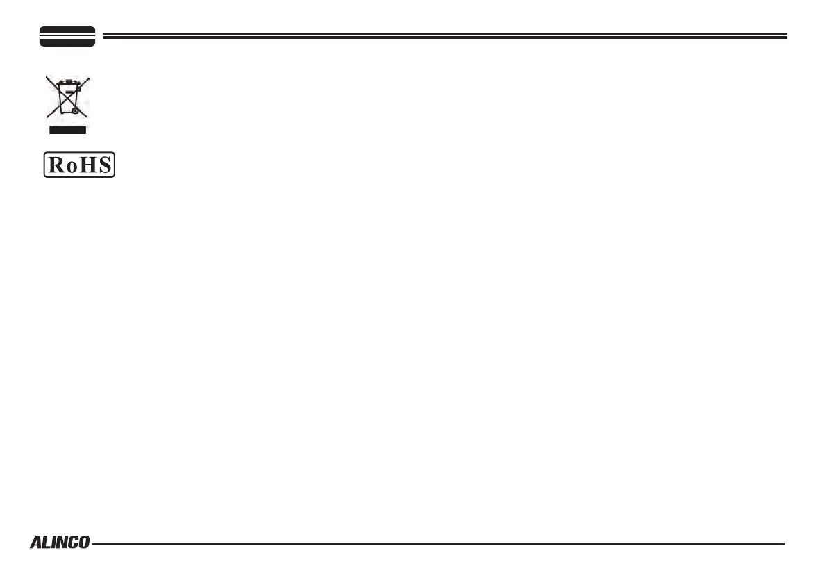 Alinco cannot be liable for pictorial or typographical inaccuracies. Changes or modifications not expressly approved by the