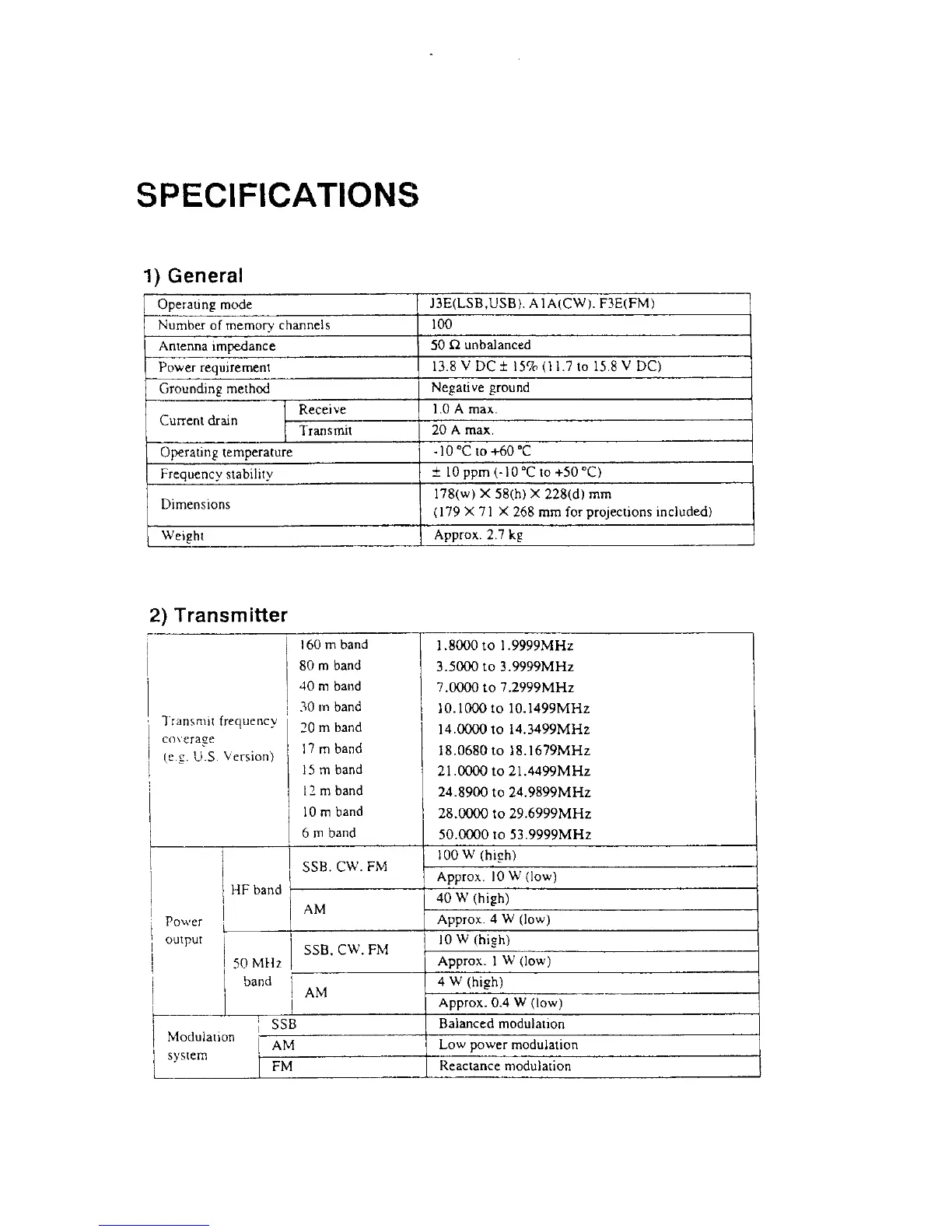 SSB, CW. FM