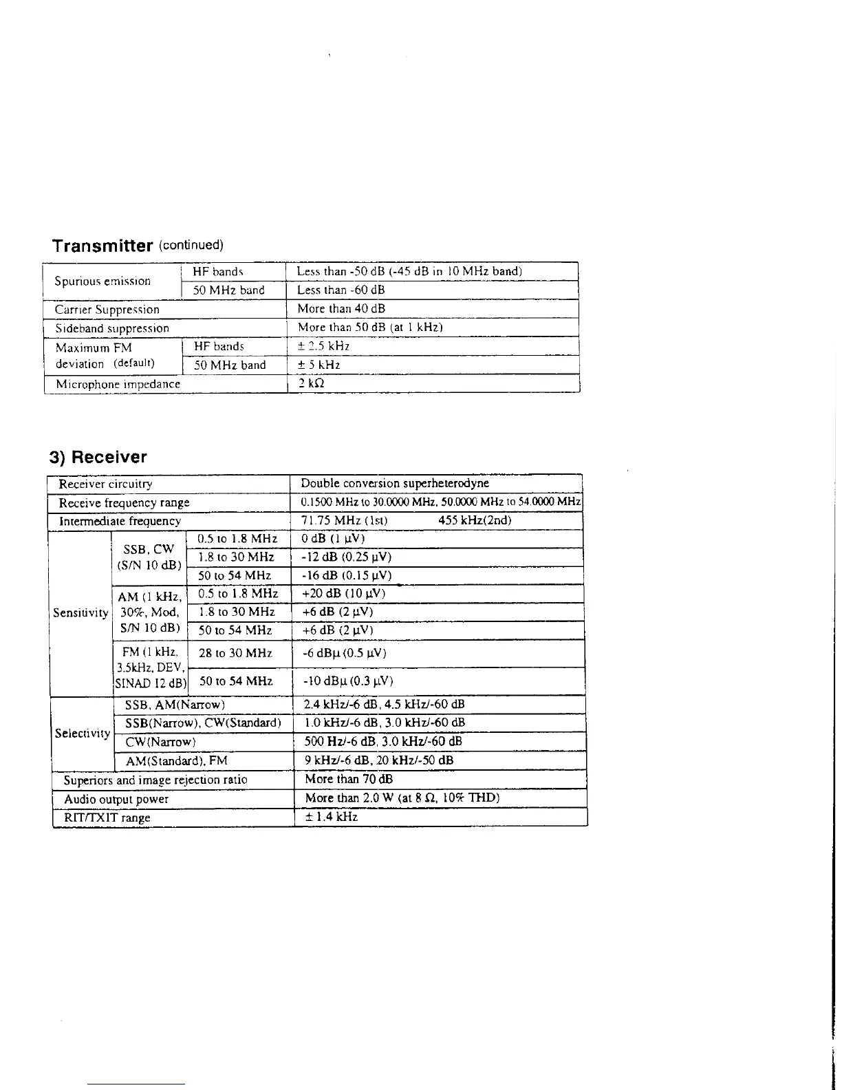 HF bands Less than -50 dB (-45 dB in 10 MHz band)