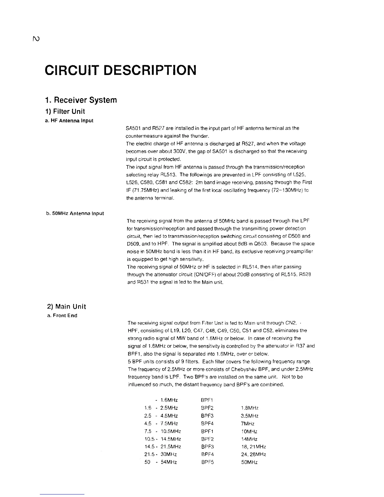 The receiving signal output from Filter Unit is fed to Main unit through CN2. •