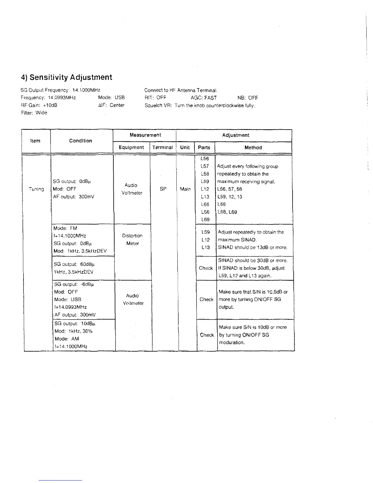 If SINAD is below 30dB, adjust