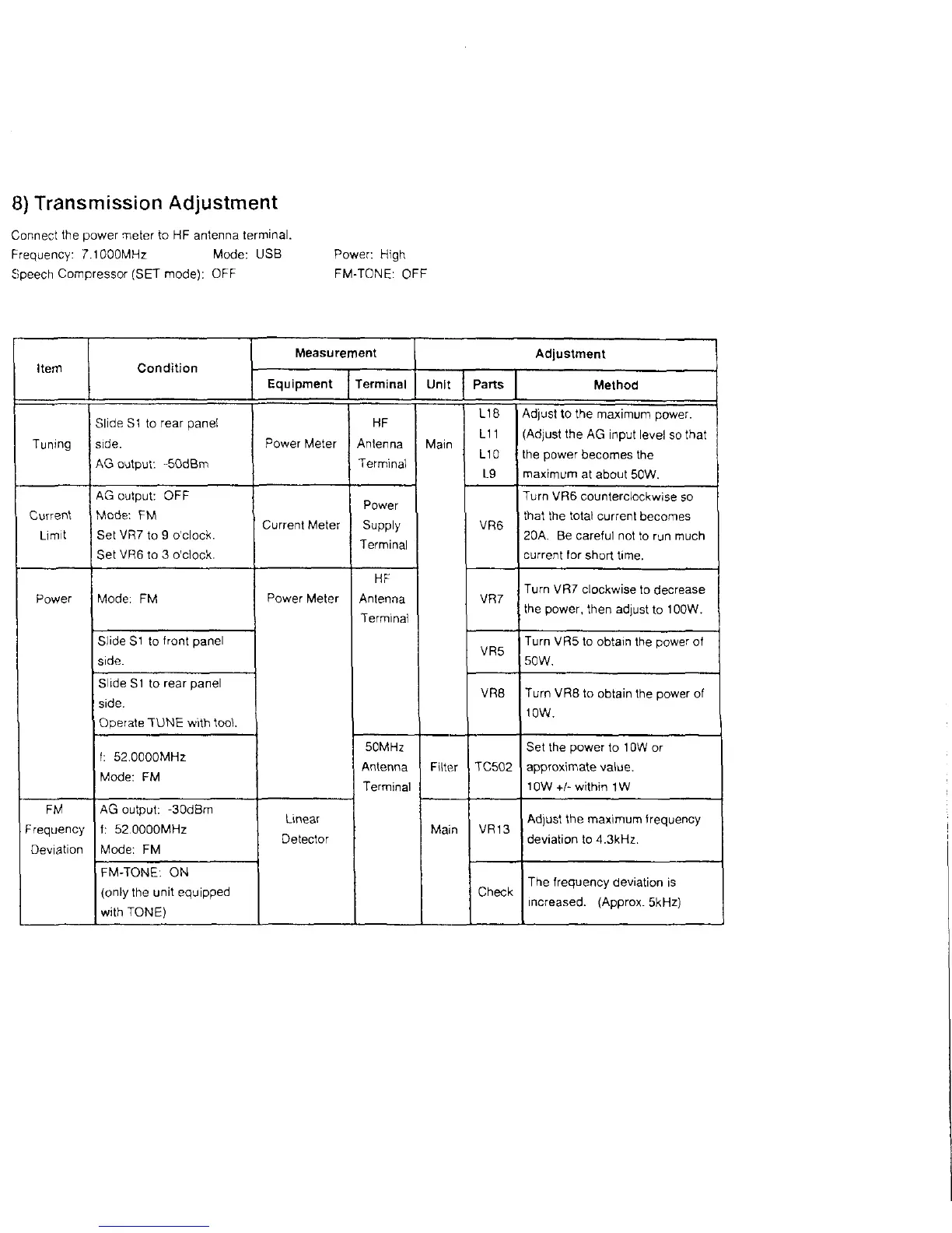 Speech Compressor (SET mode): OFF FM-TONE: OFF