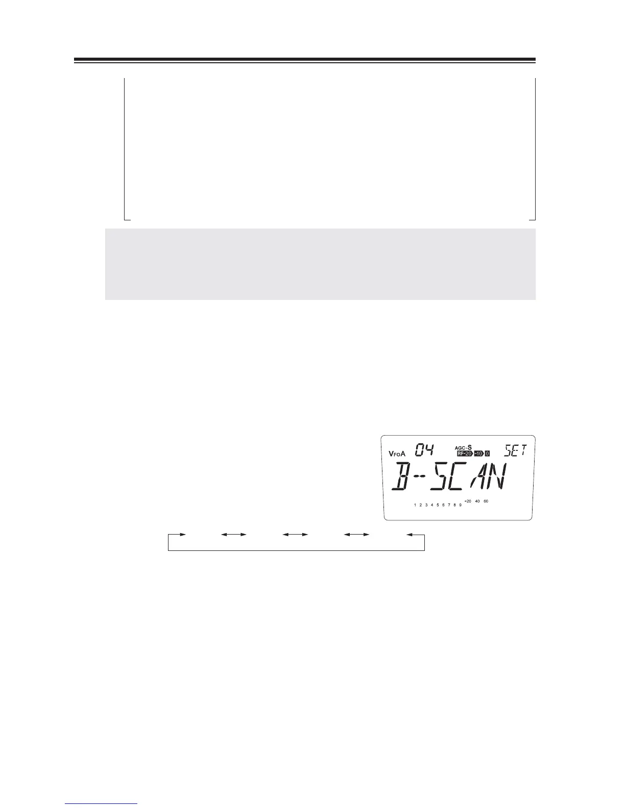 3 scanning modes are available in VFO mode. Selected scanning will be performed in VFO
