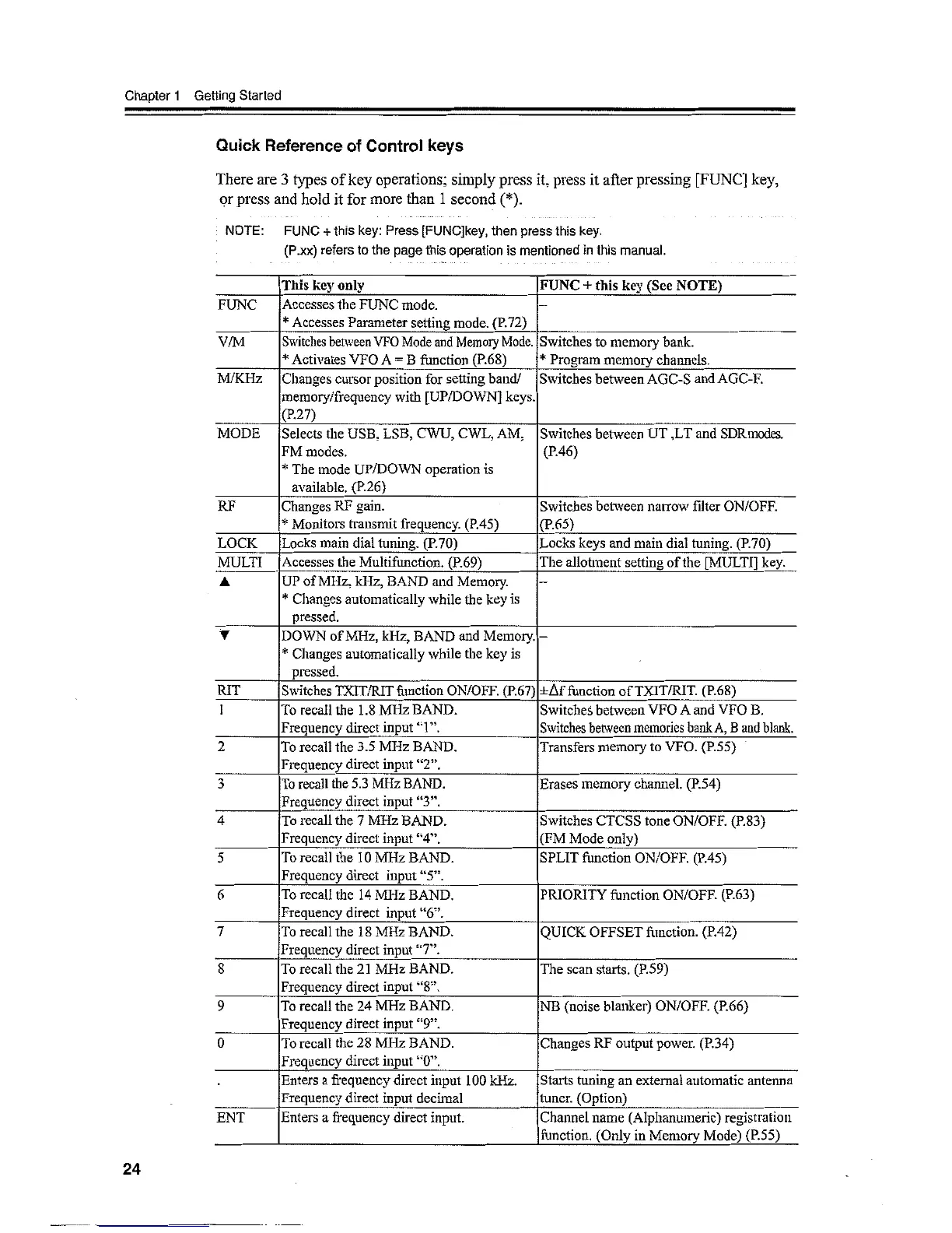 Alinco DX-SR9 - Quick Reference of Control Keys