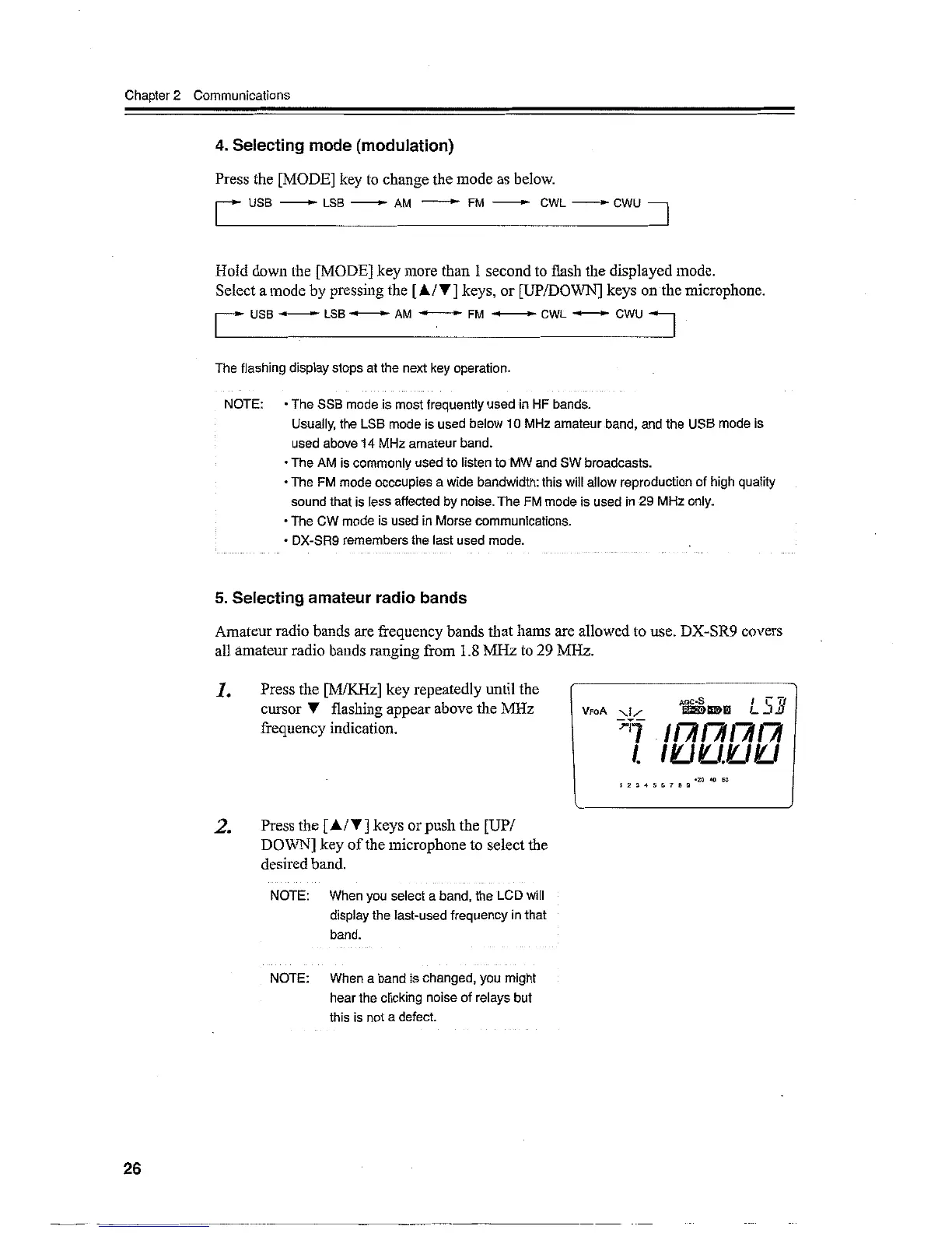 Alinco DX-SR9 - Selecting Mode (Modulation); Selecting Amateur Radio Bands