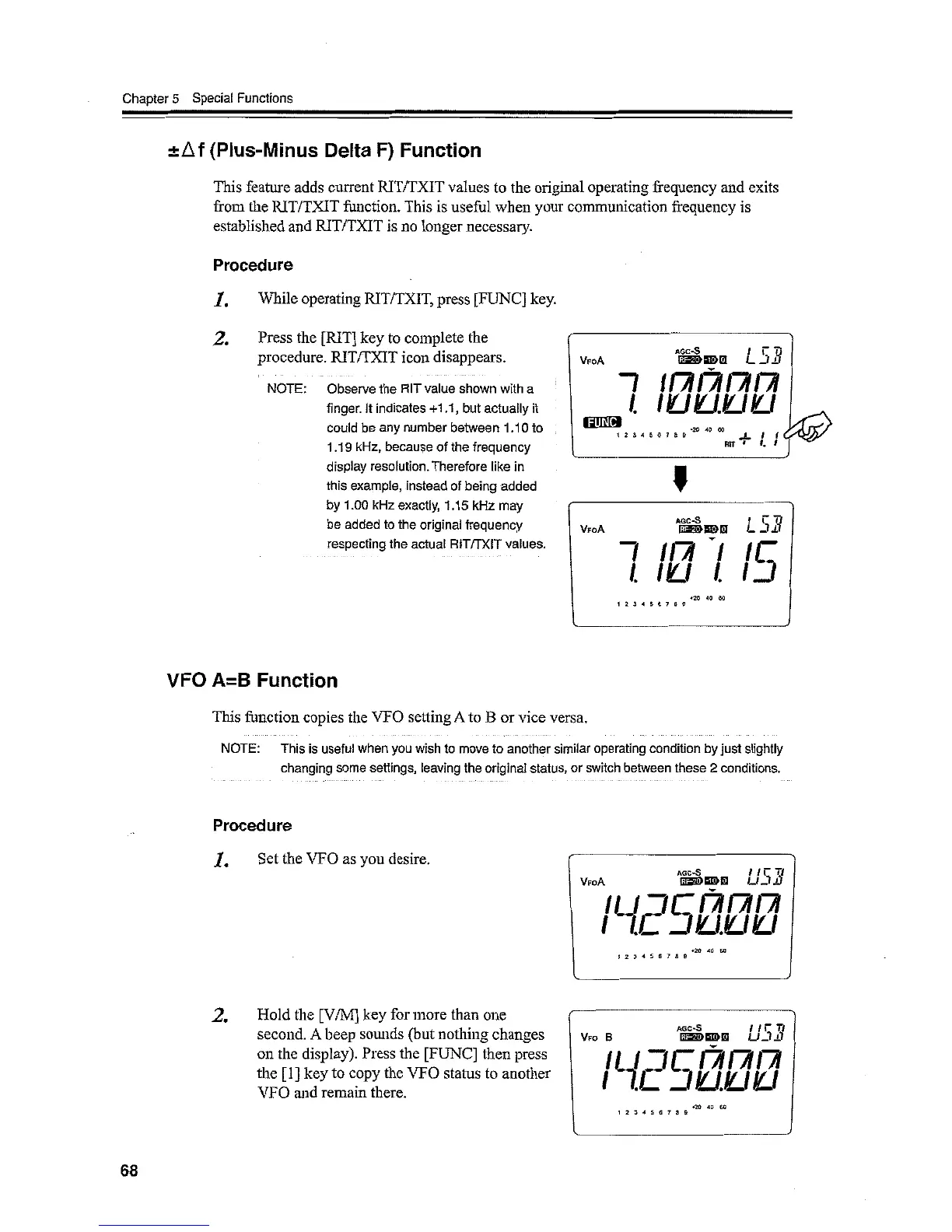 Alinco DX-SR9 - Plus-Minus Delta F Function; VFO A=B Function