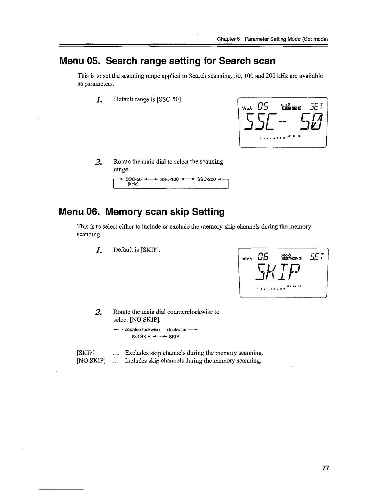 Alinco DX-SR9 - Search Range Setting for Search Scan; Memory Scan Skip Search