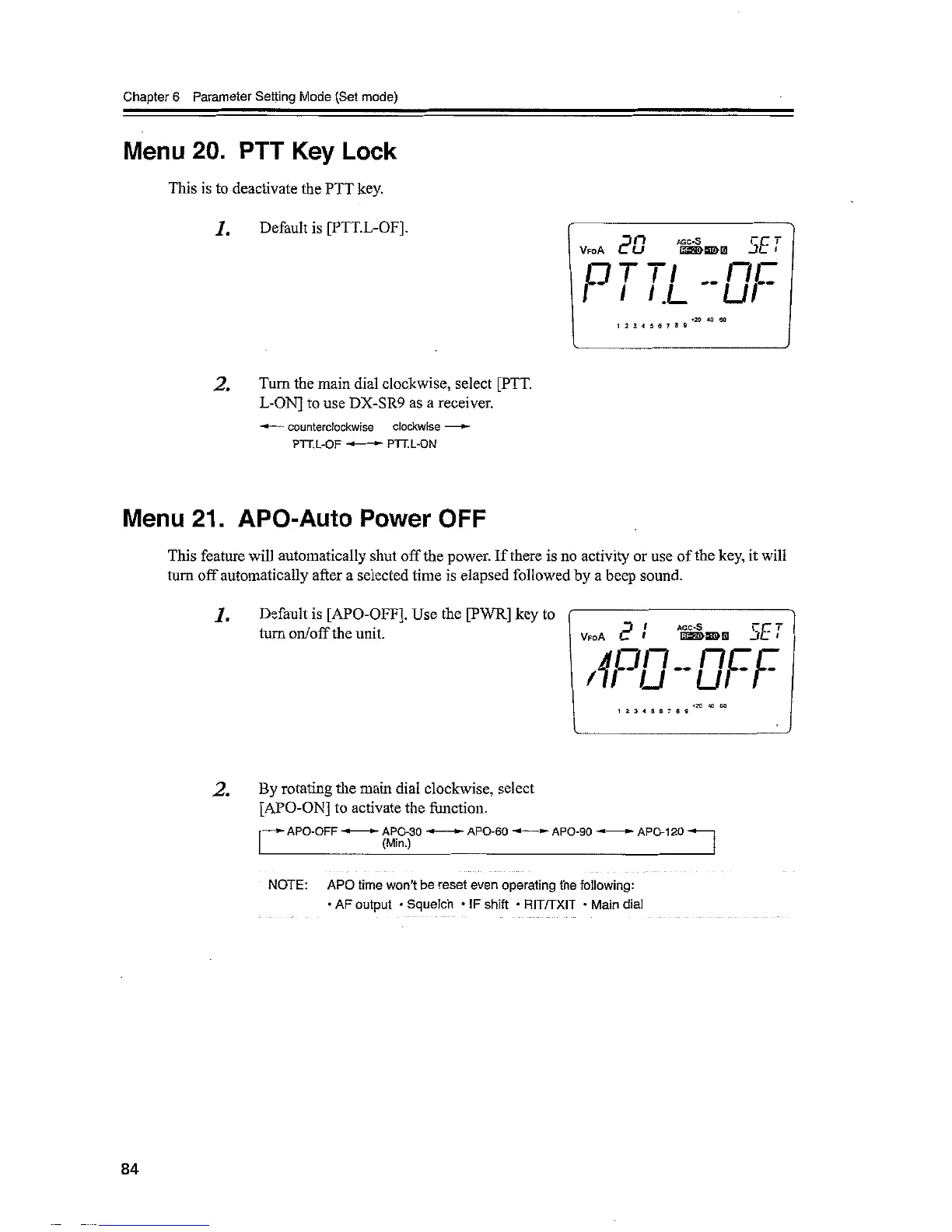 Alinco DX-SR9 - PTT Key Lock; APO-Auto Power off