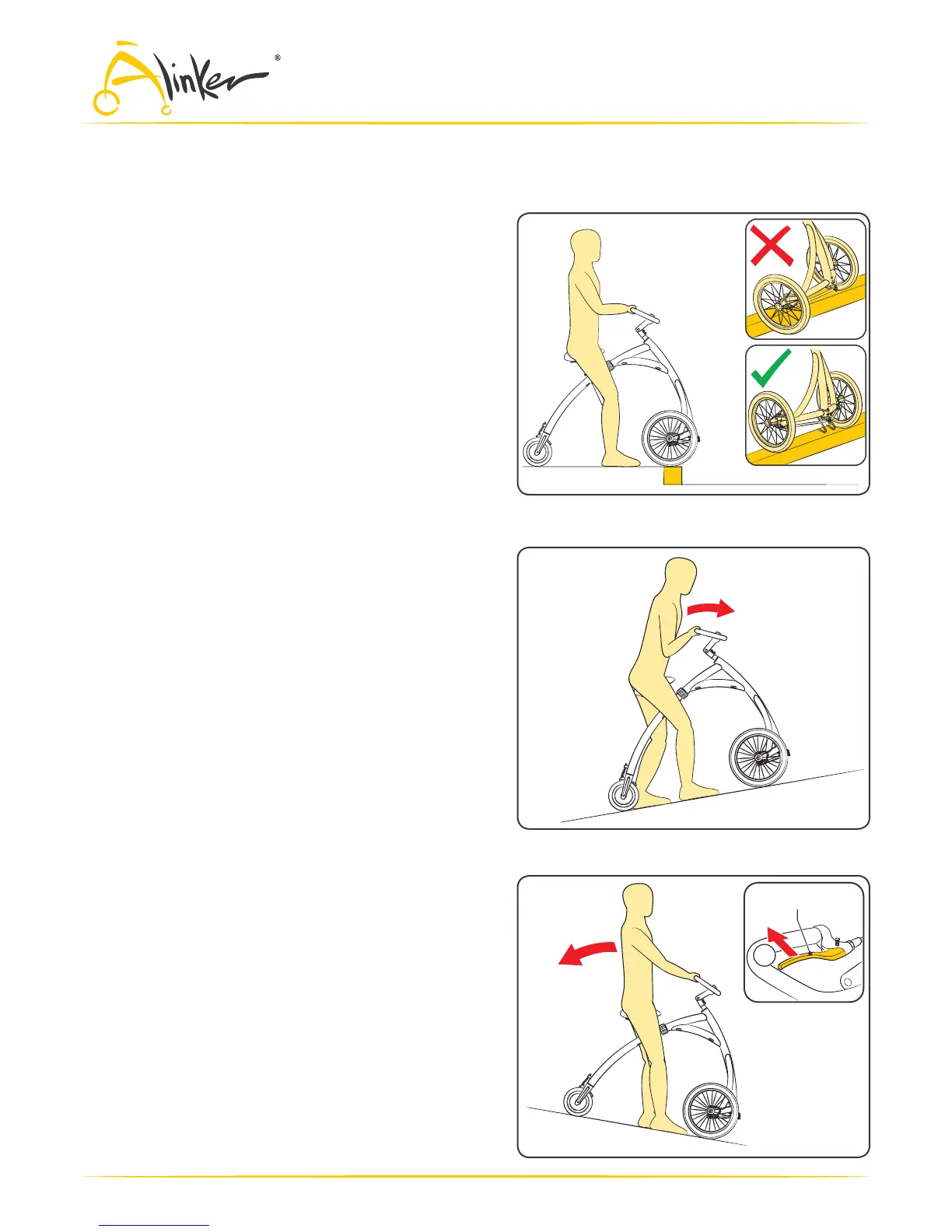 wheels at 90 degrees to the slope. Use your feet
