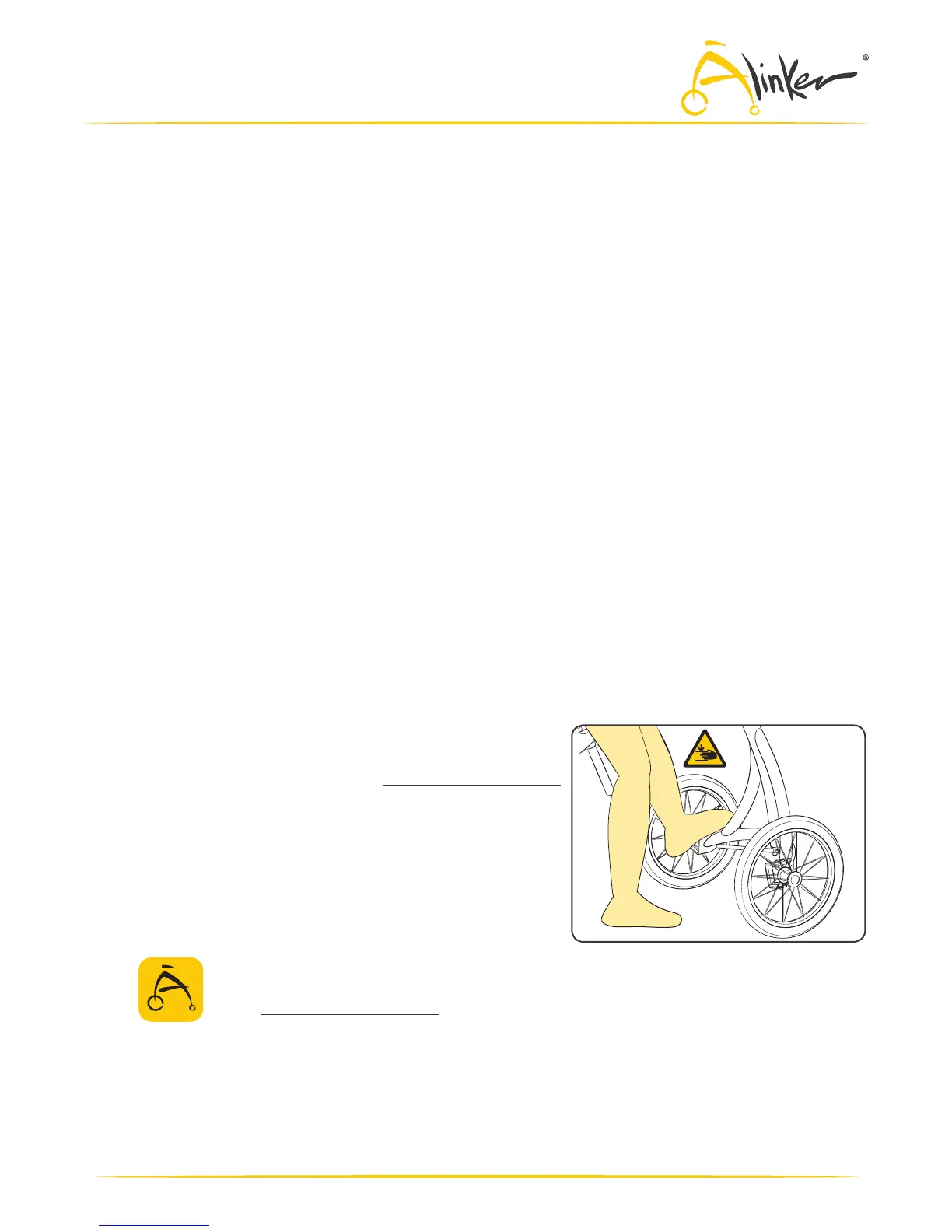 – Know your limitations, keep the Alinker at a speed which you can safely navigate obstacles.