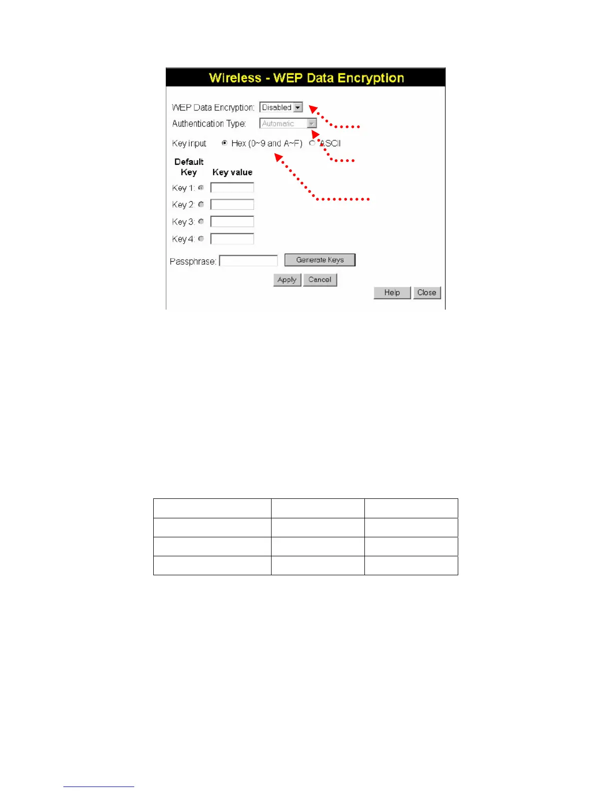 you select a WEP encryption mode from the security list.