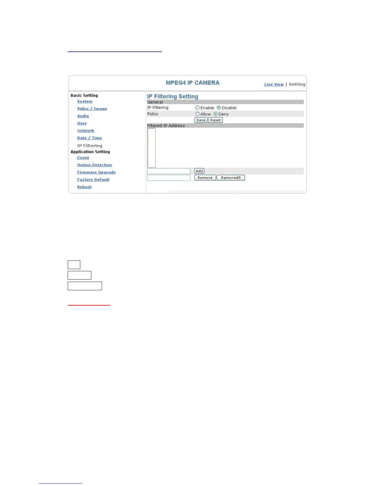 Basic Setting > IP Filter