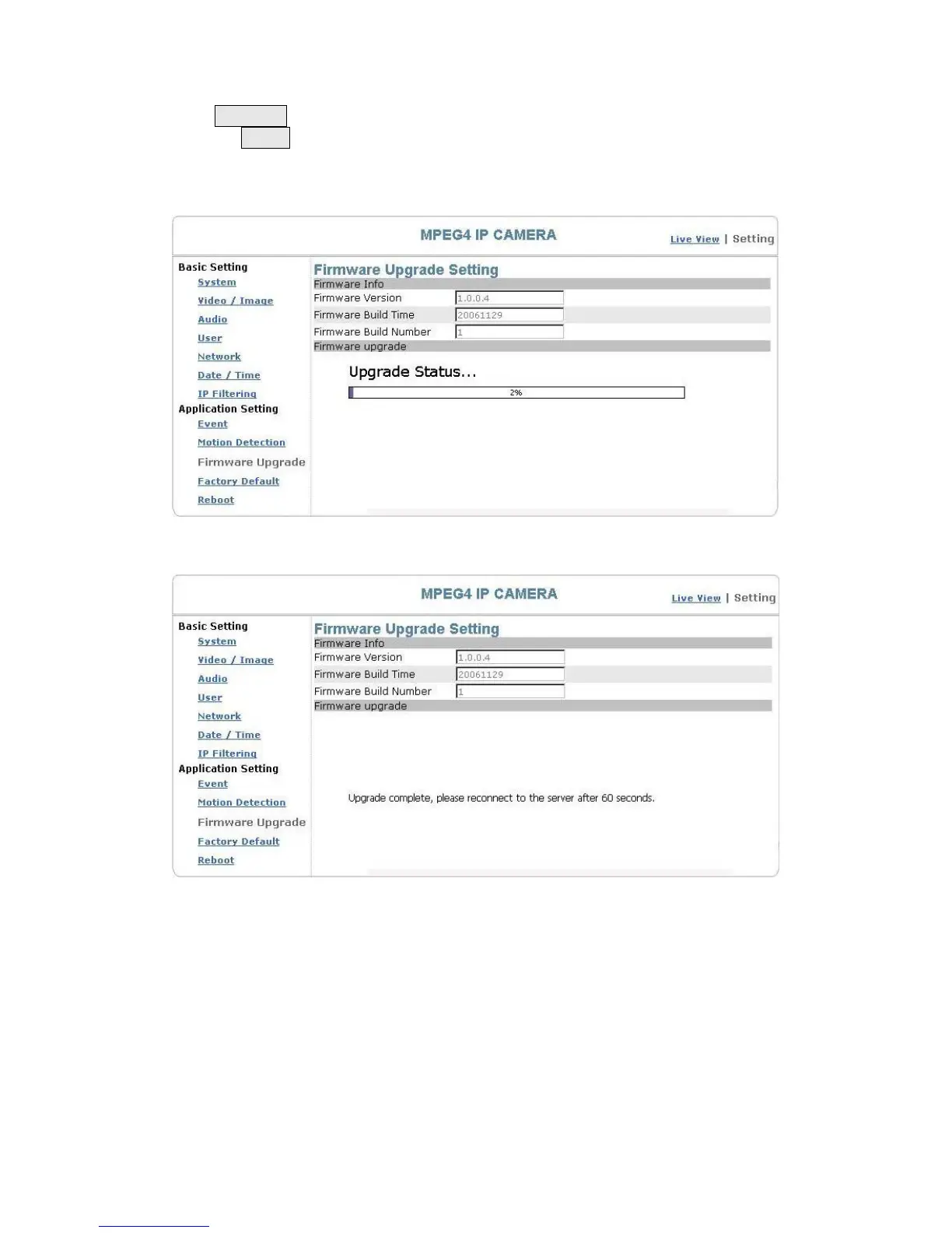 manually. The camera will reboot automatically after 60 seconds (Reboot OK). Then