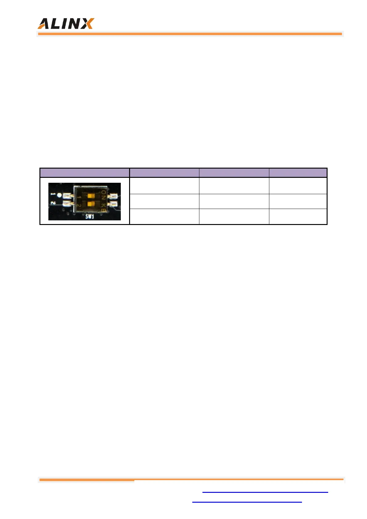 The AC7015 has a 2-digit DIP switch SW1 on the core board to configure the