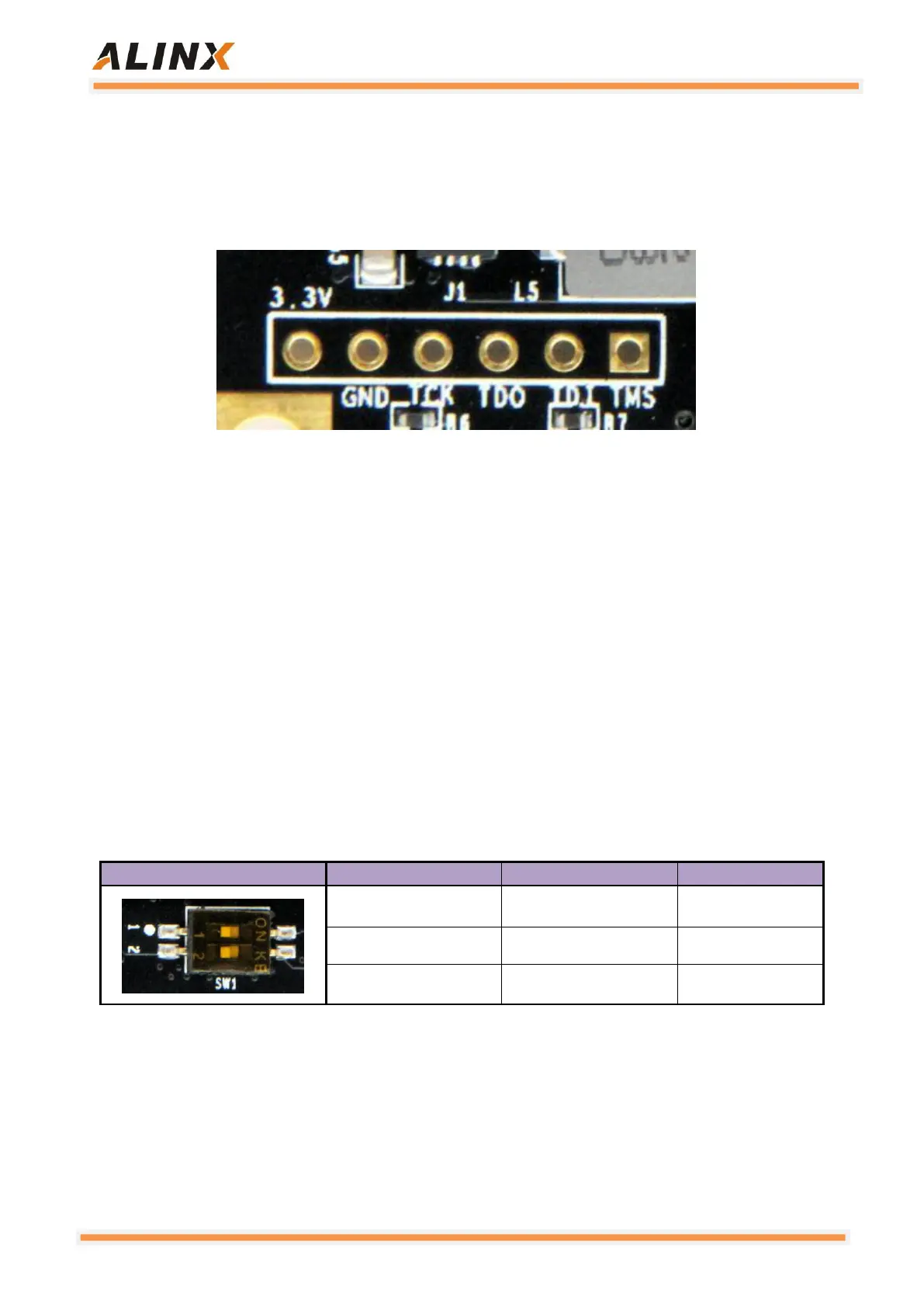 The AC7021 has a 2-digit DIP switch SW1 on the core board to configure