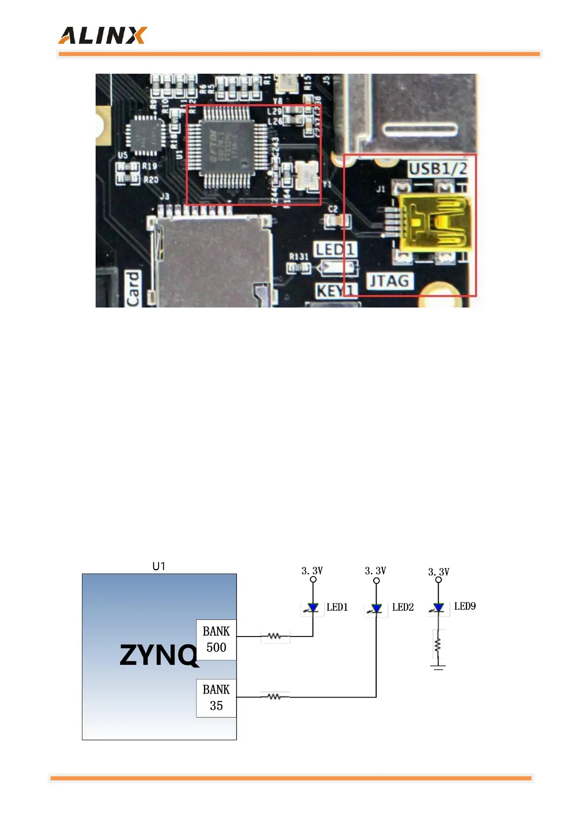 The AX7021 has three red LEDs on the carrier board, one of which is the