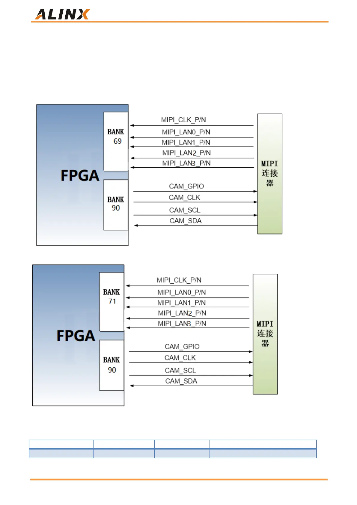 connected to BANK69 and BANK90 of FPGA. MIPI2 corresponds to J10, and is connected to BANK66 and BANK84