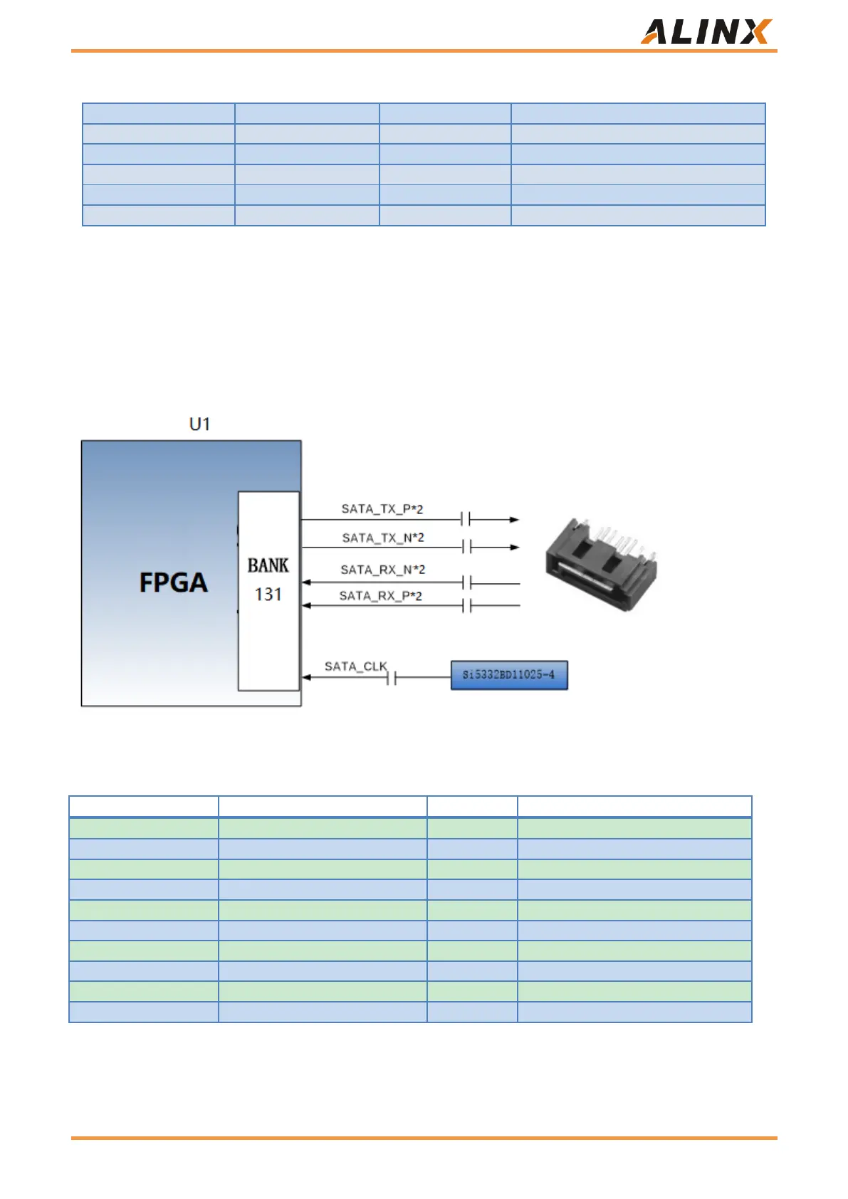 The SATA interface FPGA pin assignments are as follows: