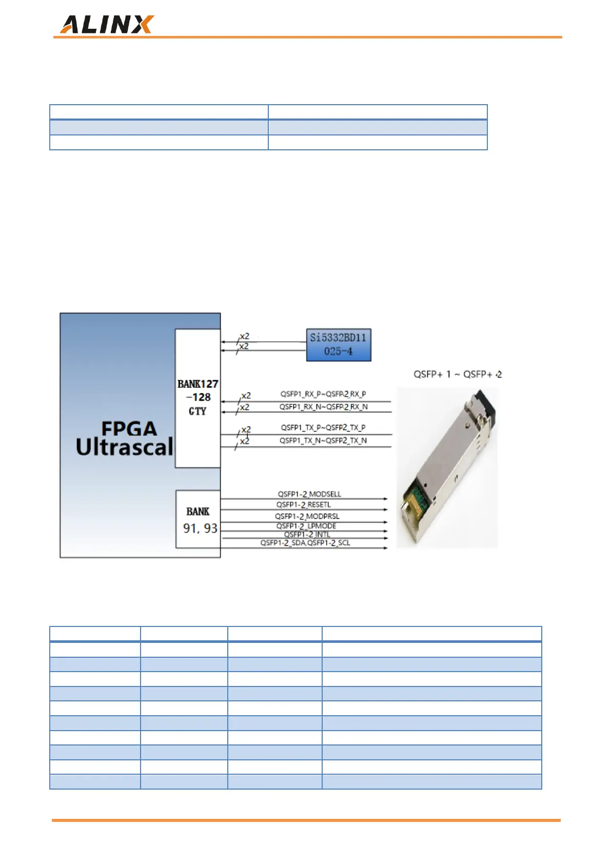 interfaces are respectively connected with the four RX/TX of the GTY transceiver of BANK127-128 of the FPGA. The