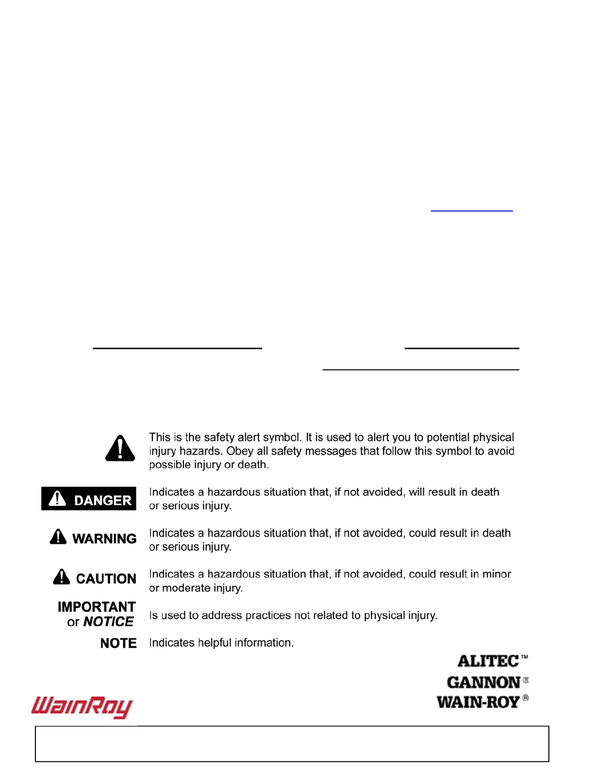 Read this manual before operating your WainRoy equipment. The information presented will prepare you to do a better