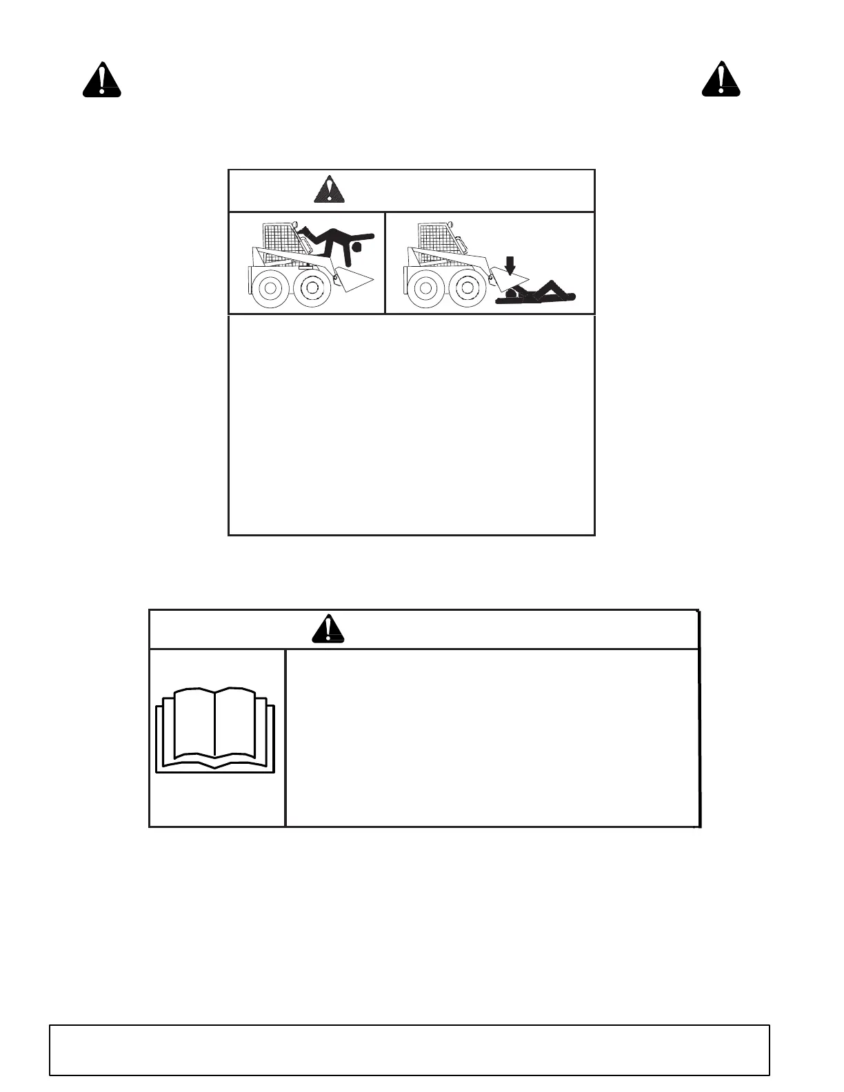 Never go underneath raised equipment or raised Skid Steer lift