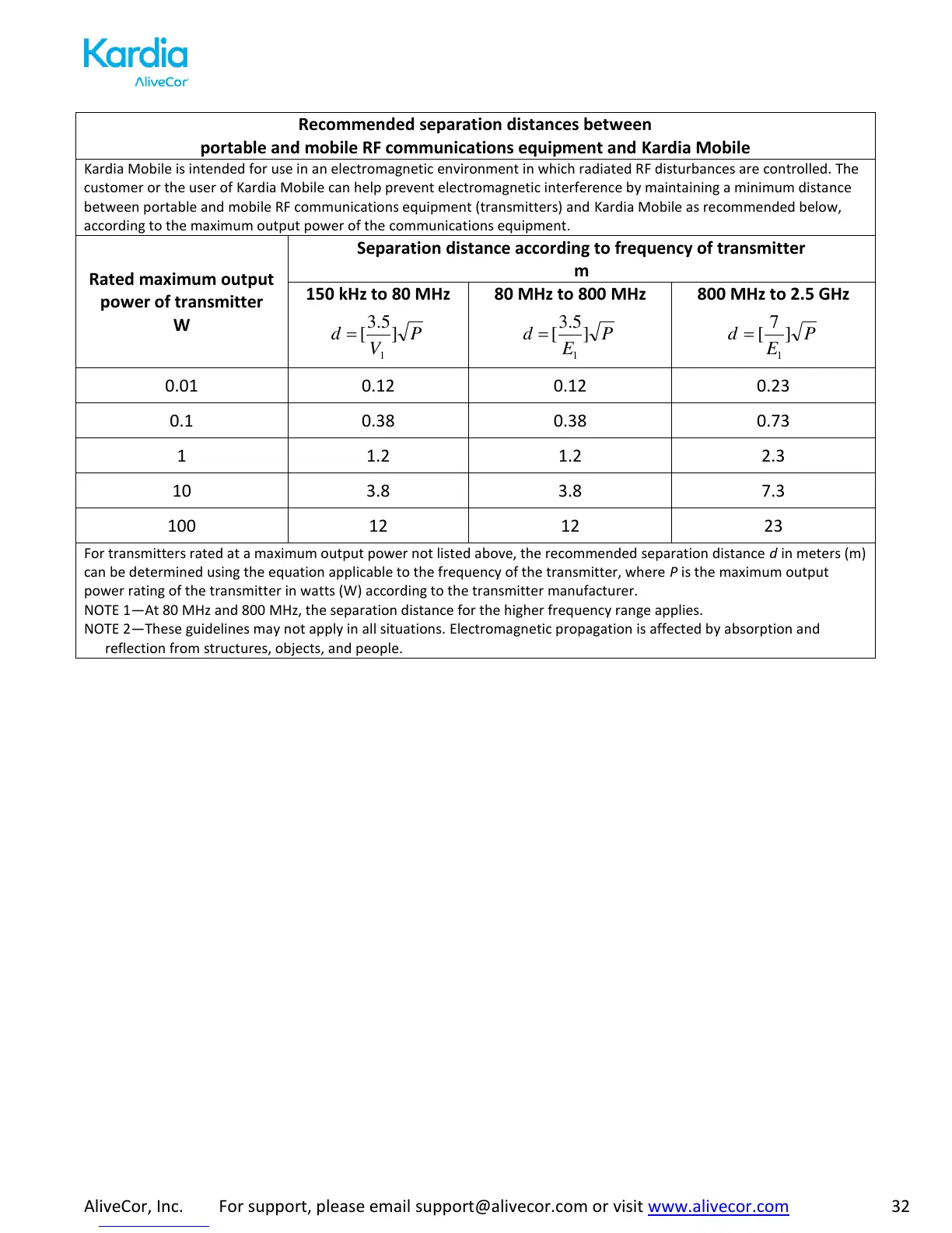 between portable and mobile RF communications equipment (transmitters) and Kardia Mobile as recommended below,