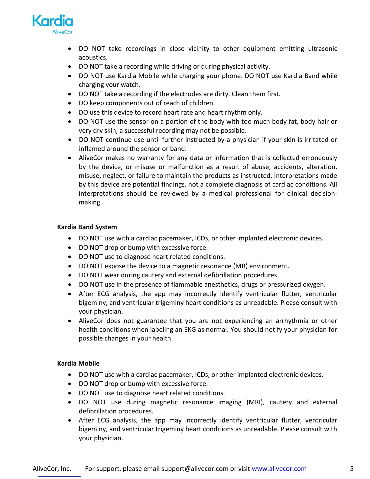 AliveCor, Inc. For support, please email support@alivecor.com or visit www.alivecor.com 5