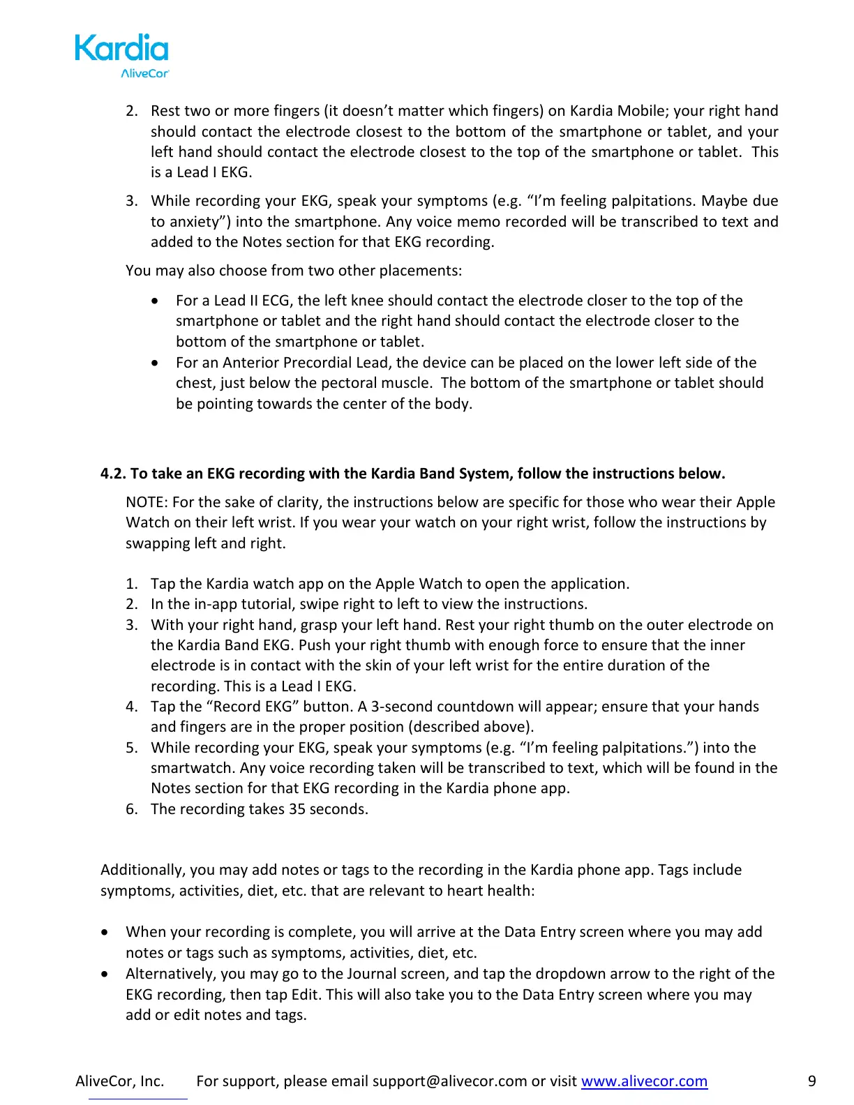 AliveCor, Inc. For support, please email support@alivecor.com or visit www.alivecor.com 9