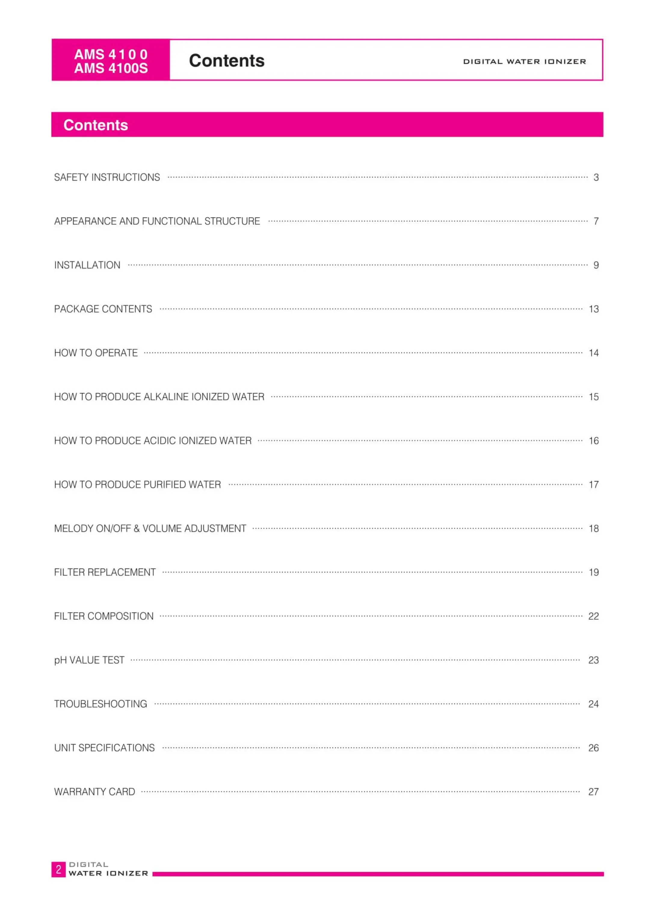 Alkamedi AMS 4100 - Table of Contents