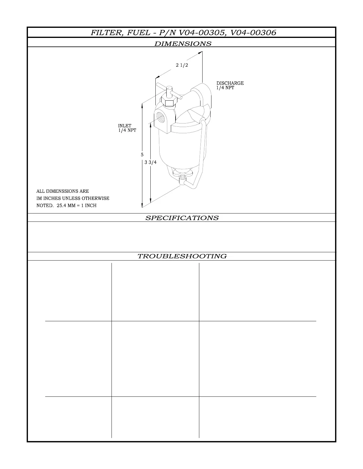 INLET AND OUTLET PORT SIZE..................1/4 NPT