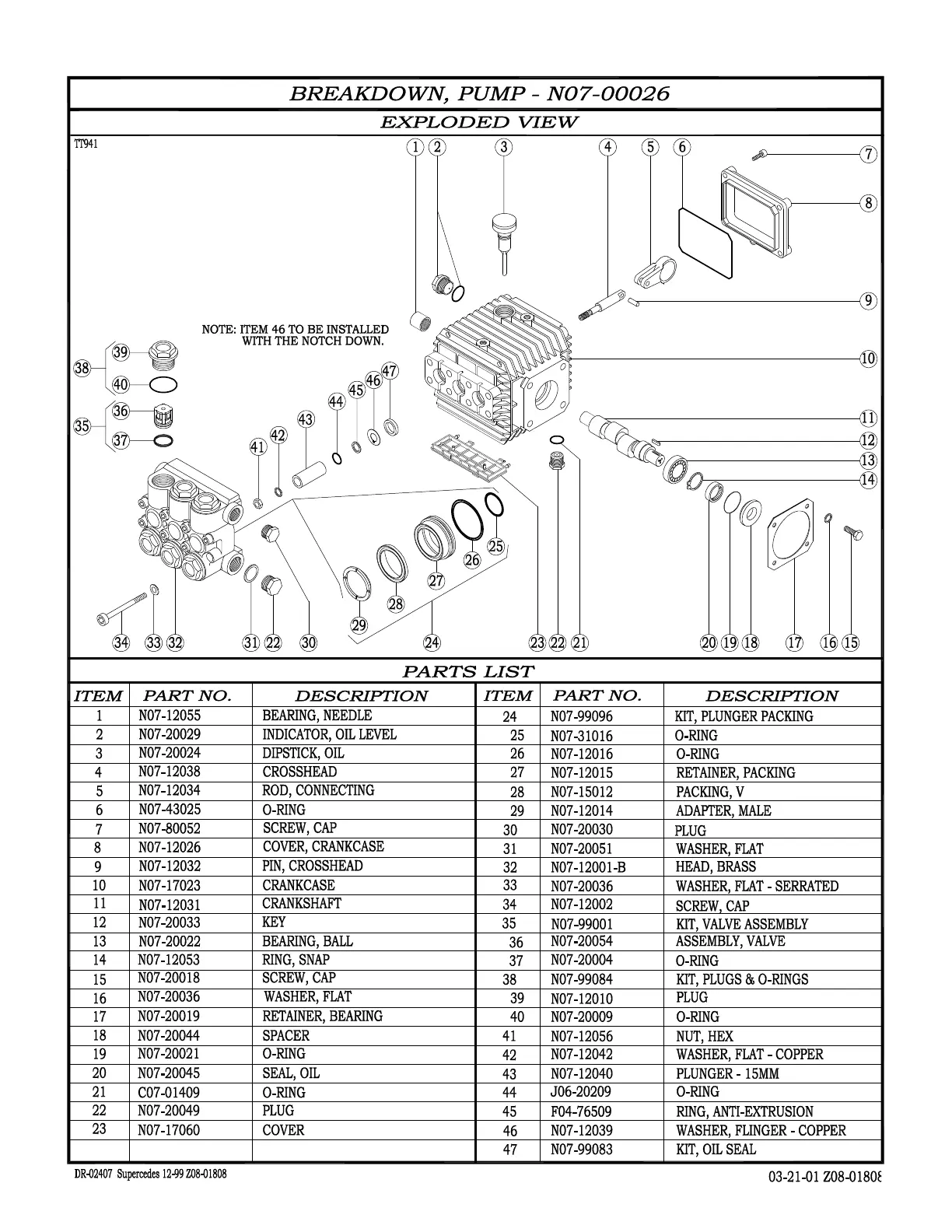 ALKOTA 2142 - Pump Breakdown; Exploded View; Parts List