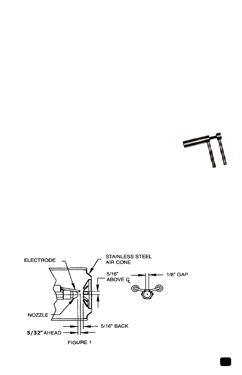 2. Raise electrode tips 5/32” above surface plane or end of oil nozzle.