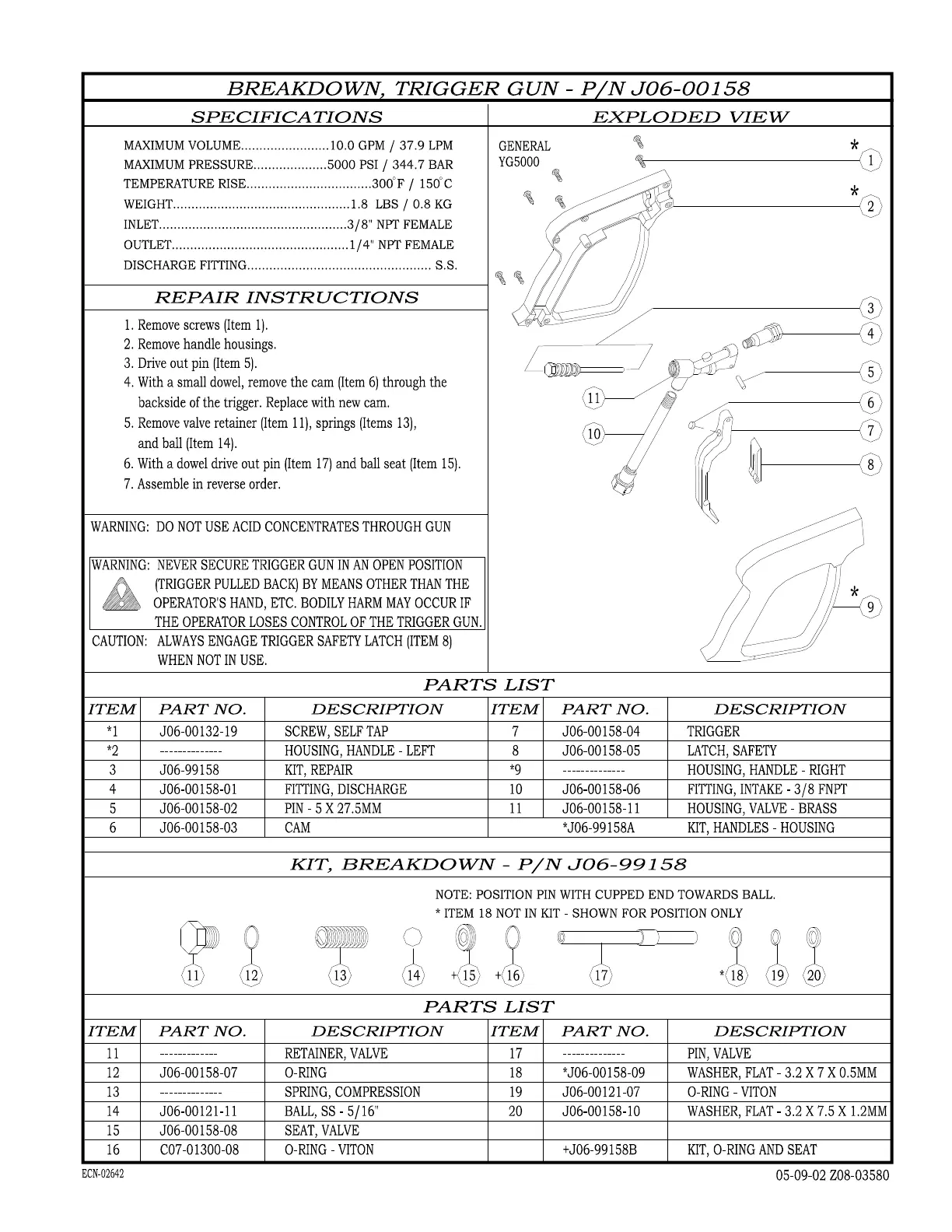 ALKOTA 2142 - Trigger Gun Breakdown; Specifications & Repair; Exploded View & Parts List