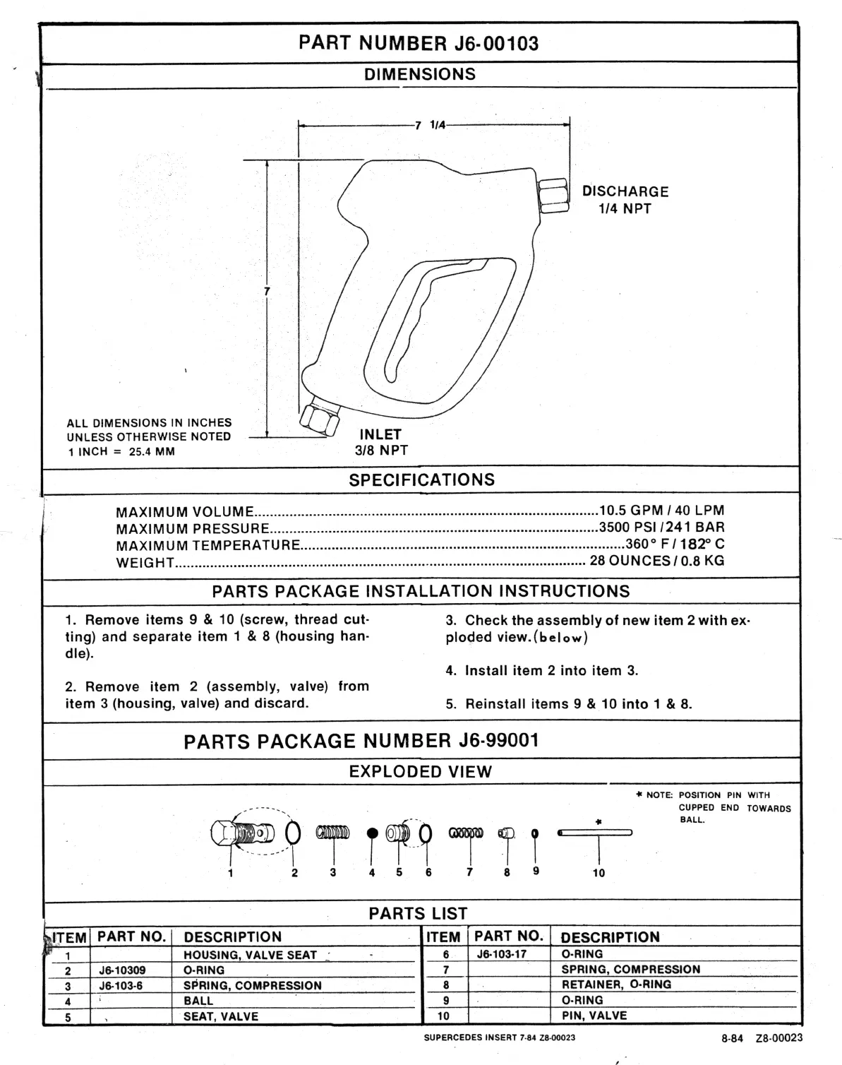 ALKOTA 2142 - Trigger Gun Parts Package; Specifications & Installation; Exploded View & Parts List