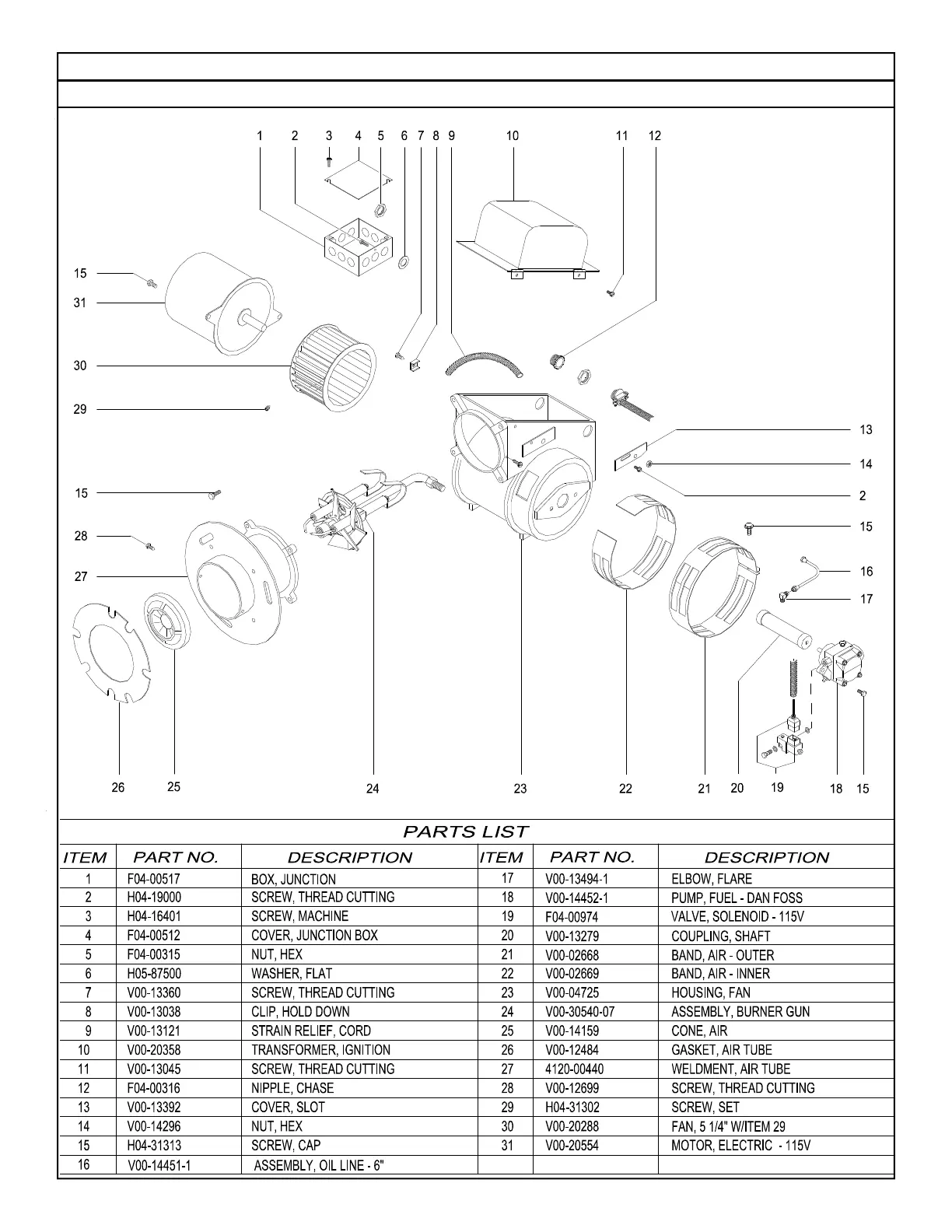 BREAKDOWN, BURNER - OIL 115V 1PH 60HZ