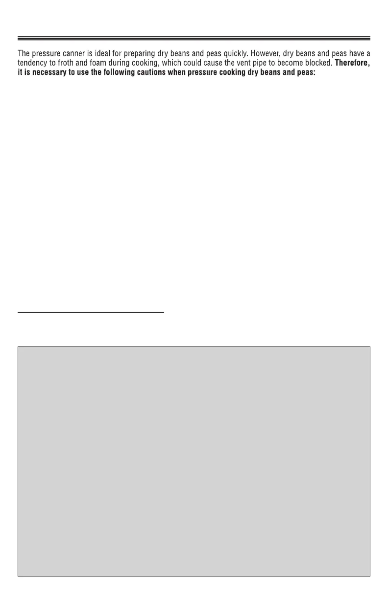 FOR DRY BEANS AND PEAS, DO NOT FILL CANNER OVER