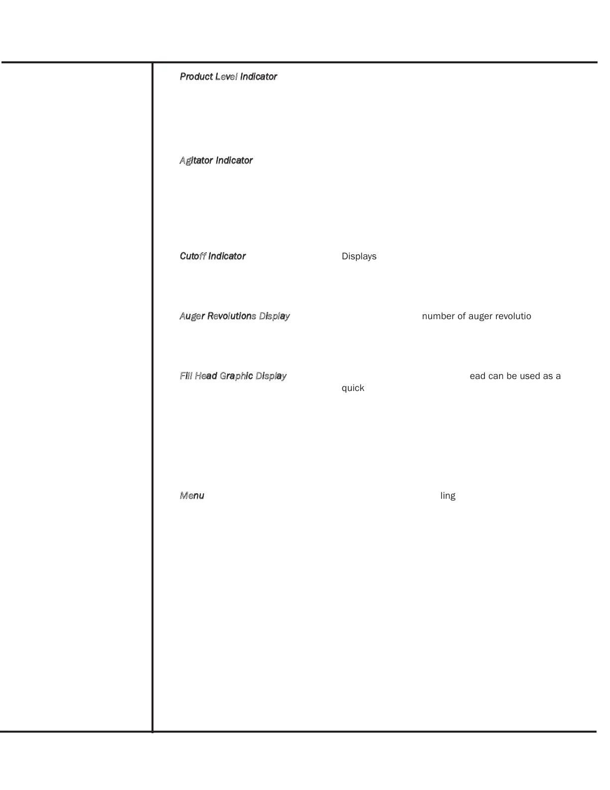 Displays status of the product level in the hopper and
