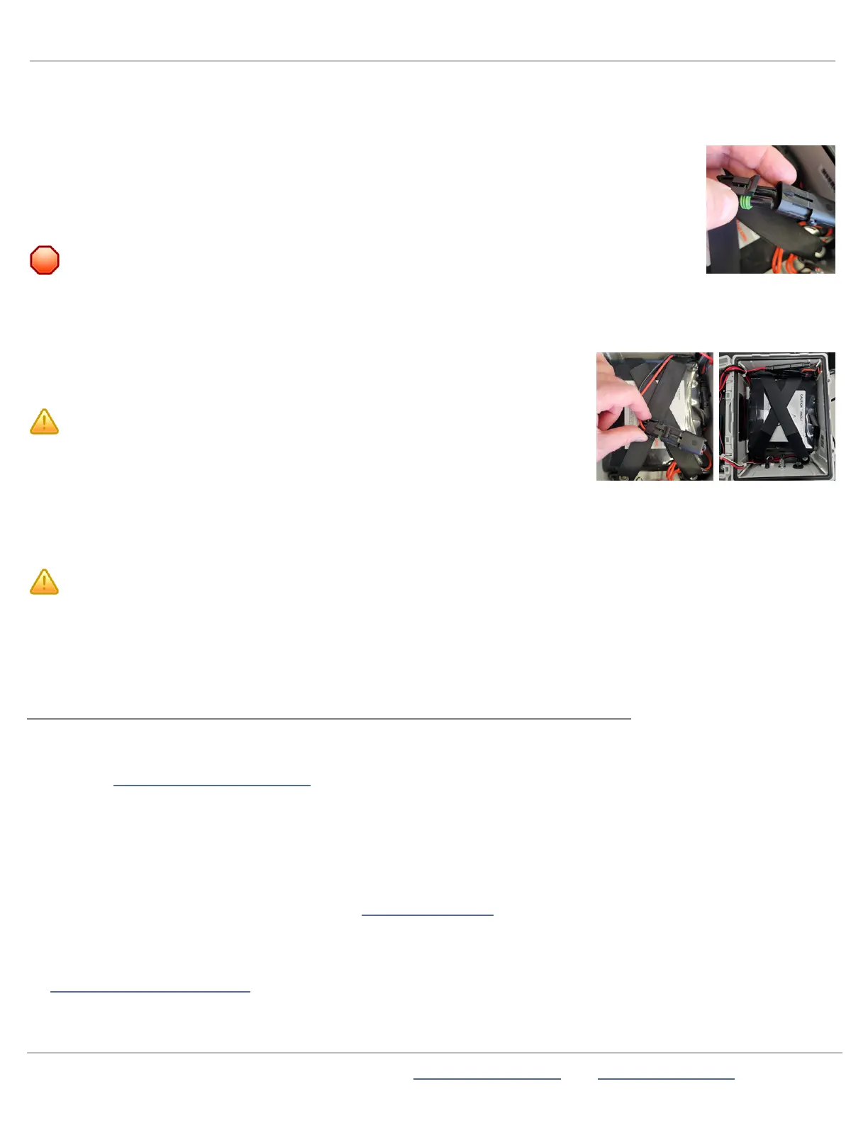 Detach the battery connectors (shown at right)from the StatTrak-E to the battery or batteries and lift