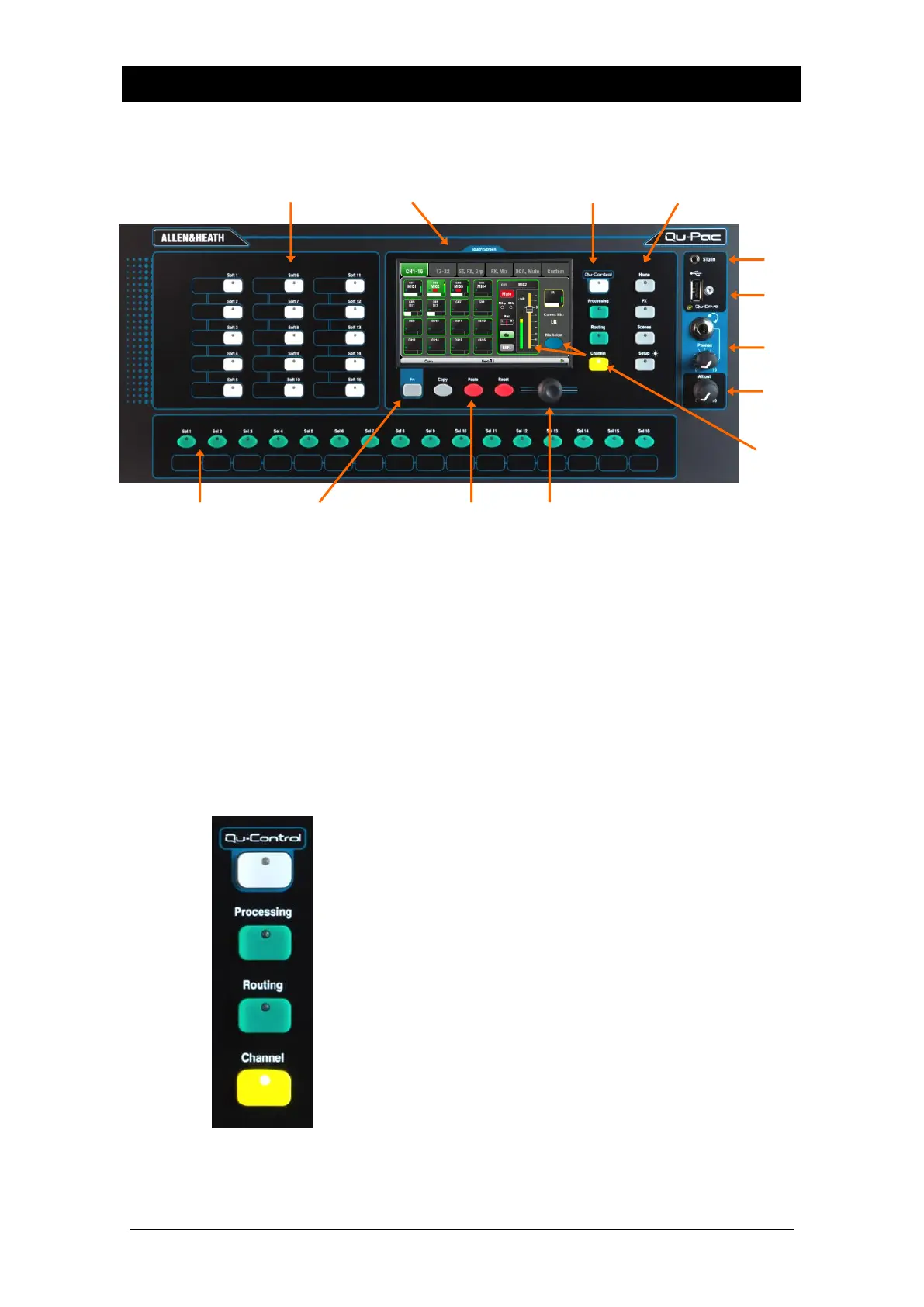 controlled from the Qu-Pac front panel. The colour touch screen provides quick