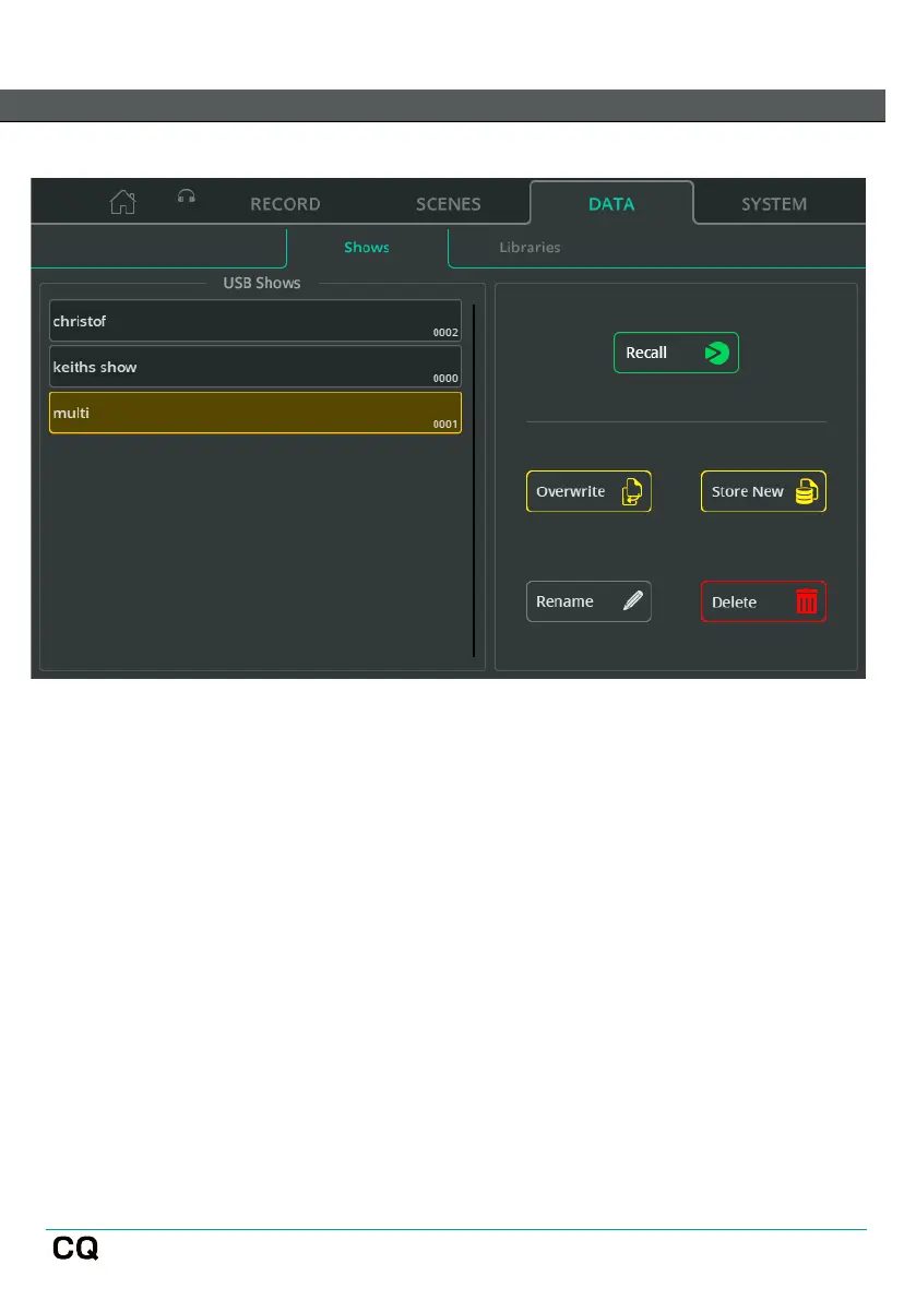 Recall Replace the current Show (state, Scenes and Libraries) on the CQ with the