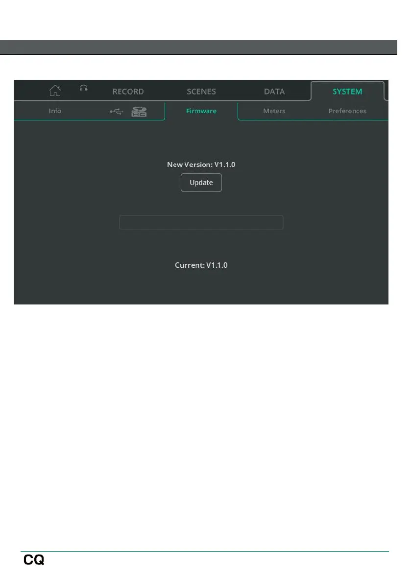 Shows the firmware currently installed on the unit at the bottom of the screen